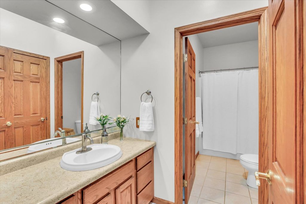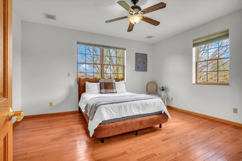 Located in the well-situated Sandy Ridge neighborhood close to schools, parks, the library and everyday conveniences, this home delivers both comfort and flexibility in a layout that stands out. The main level lives like a ranch, featuring a primary bedroom suite on the first floor along with the main living spaces, making day-to-day living simple and convenient. The layout offers a comfortable flow between the living, dining, and kitchen areas-well-suited for being at home to relax or entertaining friends and family. Upstairs, a separate bedroom suite provides excellent privacy and flexibility. It works well as a guest space, home office, or private retreat-something not often found in similar homes. In total, there are 5 bedrooms (or flex spaces) in this home. Step outside to a covered patio with a wood-paneled ceiling, adding character and a comfortable place to relax or entertain. The fenced yard offers additional space for pets, play, or outdoor gatherings. With its ranch-style main level, private upstairs suite, and inviting outdoor space, this home offers a rare combination of convenience and flexibility.