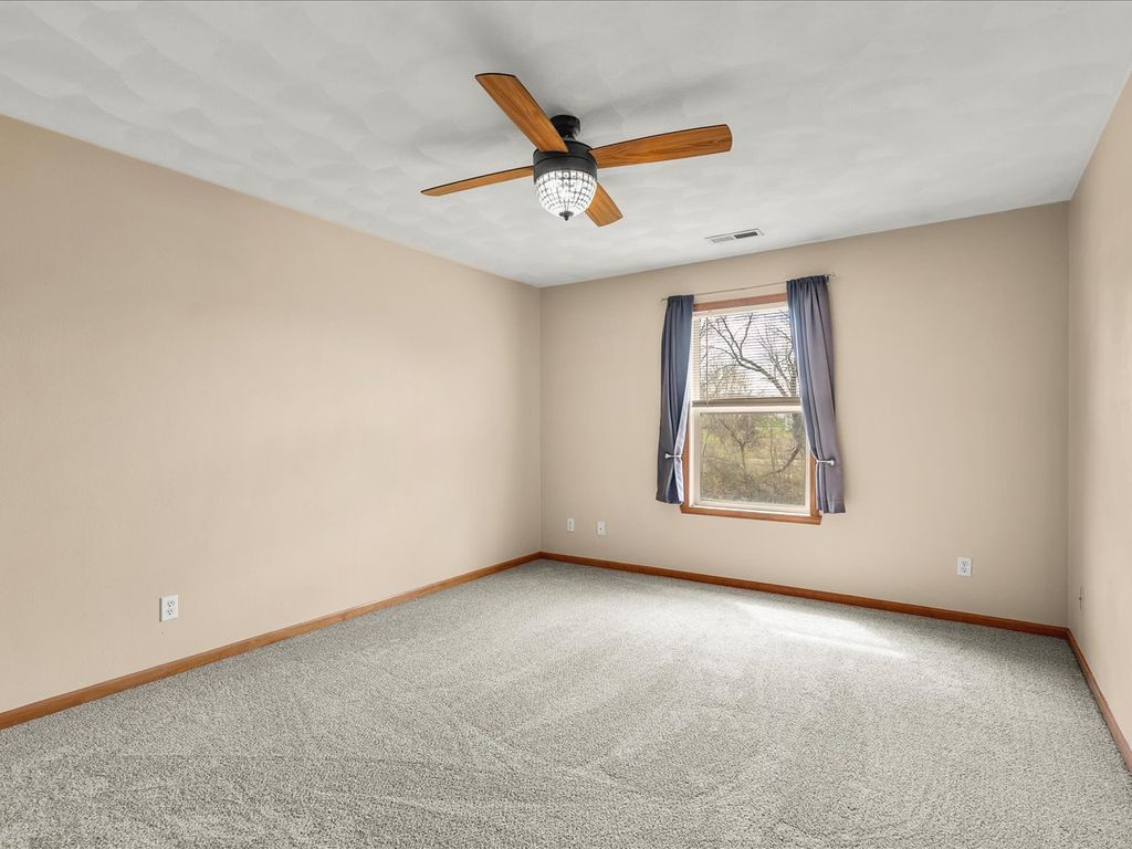 Move-in ready and beautifully maintained second-story condo located in the highly sought-after Hononegah School District in Roscoe! Freshly updated with brand new paint and carpet in 2026, this well-cared-for home offers a bright, open floor plan that feels welcoming from the moment you step inside. The kitchen features a new tile backsplash, New Light fixtures, brand new refrigerator (2025), a spacious breakfast bar with generous counter space, and a pantry providing excellent storage. The dining area offers upgraded light fixtures and abundant natural light, with sliding glass doors leading to the front deck-perfect for morning coffee. Additional updates include a new water heater (2022), water softener (2025), and a Nest thermostat that stays with the home. The building also received a new roof in 2024, offering added peace of mind. The property also includes an attached 2-car garage with excellent storage space above, providing plenty of room for seasonal items and extra belongings. The backyard offers a large open space with mature trees along the rear of the property for added privacy and a peaceful setting. Association dues are just $155 per month, and units are allowed to be leased, making this a great opportunity for both homeowners and investors.