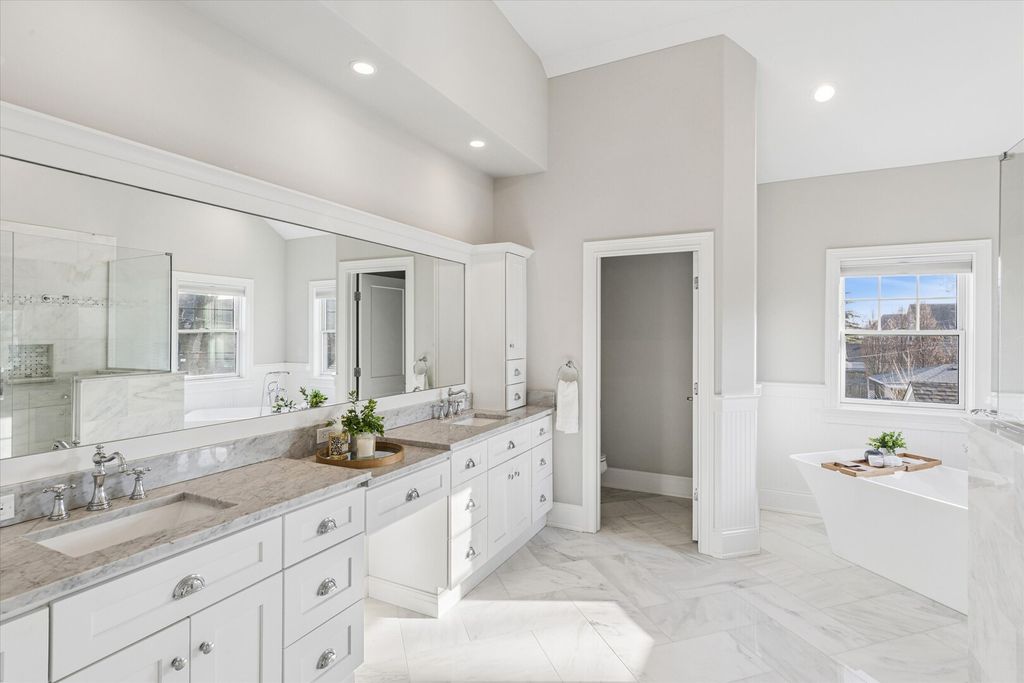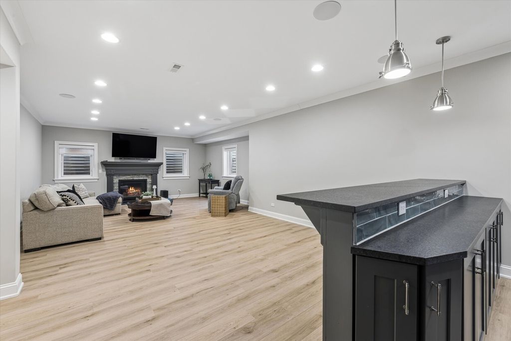 Exceptional 2017-Built Home in an Unbeatable Location Ideally situated just 3 blocks from the new Lincoln School, 1/2 block to the Prairie Path, and an easy walk to the Spring Road Business District. This stunning home offers the perfect blend of luxury, space, and convenience. Set on a rare 58' wide lot, this beautifully crafted residence features 5,921 total square feet (4,336 above grade plus 1,585 finished basement) and a 3-car garage with smart car plug. The main level boasts 10-foot ceilings, extensive custom millwork, wainscoting, and coffered ceilings throughout. A gracious formal living room and elegant dining room flank the foyer. The white gourmet kitchen showcases upgraded paneled appliances and opens to an expansive family room with fireplace and custom built-ins. A private first-floor office and a custom-designed mudroom add everyday functionality. Upstairs, you'll find 4 spacious bedrooms and 3+ luxury bathrooms, including a thoughtfully designed Jack-and-Jill bath each with private sink and toilet areas. The luxurious primary suite offers a spa-inspired bath and an oversized California Closet. A large second-floor laundry room adds convenience. The finished third-floor walk-up includes a full bath-ideal for an au pair suite, private office, or guest quarters. The incredible finished basement is designed for entertaining and relaxation, featuring a full bar, newer luxury vinyl floors, second fireplace, recreation room, fifth bedroom, exercise room, and full bath. Step outside to a huge, park-like fenced backyard with professional landscaping, an oversized patio, pergola, and built-in grill-perfect for outdoor gatherings. Additional highlights include custom window treatments, 5.1 total bathrooms, and high-end finishes throughout. This fully loaded home truly checks every box.