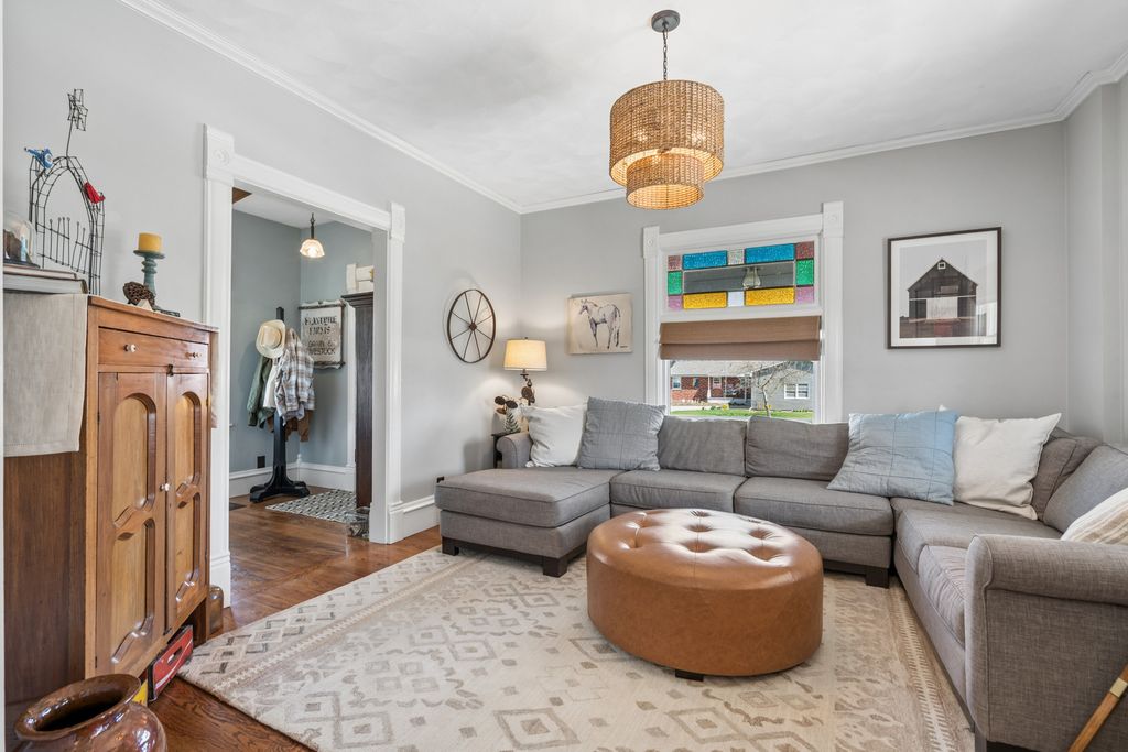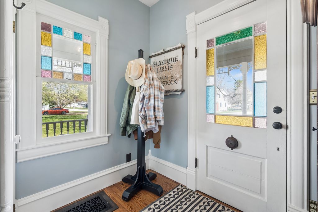 This is a beautiful, move in condition Victorian home! Lots of original transom stain glass windows, hardwood floors, gorgeous built in dining room hutch with lead glass. Foundation of home redone in the 1980's (pictures at home). Finished basement with full bath, laundry room with wet sink, and rec room. Main level office can be used for 4th bedroom. Generous size bedrooms on 2nd level. Master bedroom features private balcony. Updated bathrooms throughout home! Exterior features large relaxing screened porch, oversized 25x24 garage, 11x13 shed and fenced in backyard on a spacious double lot! Entertain on the wrap around front porch and paver patio. Other updates: furnace 2025, new roof, gutters and siding Fall of 2024. 200 amp electrical at bottom of basement staircase T. This is a gorgeous home ready for its next owner! All schools within walking distance is a real plus! Don't miss this opportunity! Sq footage per appraisal, buyer and buyer's agent to verify information.