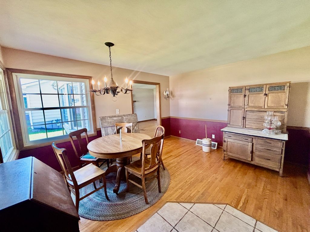 Adorable home located within walking distance to every level of school. Welcome to a large covered front porch plus a back deck with a pergola. Large living room with hardwood floors and a gas fireplace. Nice working kitchen with ceramic tile, 1st floor bedroom and large mud room/utility room with ceramic tile and large walk-in closet for pantry storage. Upstairs has 2 bedrooms with built-in dresser drawers. The partial basement was completely redone with new drain tile and cinder block walls. Huge 3 car garage with attic storage and a cute back yard.