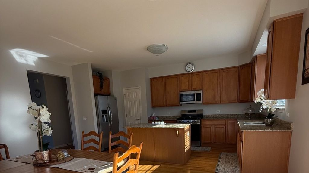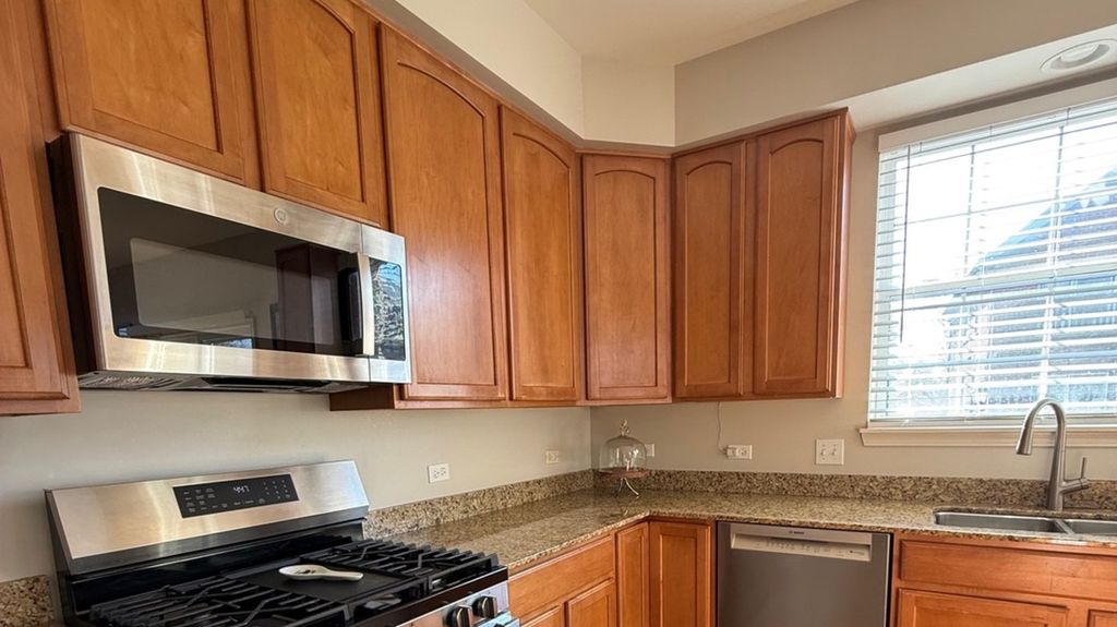 This charming townhome near downtown offers a bright and airy end unit, filled with natural light throughout. The gourmet kitchen is a true highlight, showcasing thick granite countertops, a generously sized island, and ample space for cooking and socializing. The open layout connects the kitchen and dining room, with large windows and a private balcony. Stainless-steel appliances and abundant cabinetry make this space ideal for everything from casual meals to entertaining. The inviting living room provides ample space for a large-screen TV and casual gatherings. With 3 bedrooms, 2 full baths, and 1 half bath, this home offers plenty of room for family, guests, or a home office. The fully finished lower level extends your living space, perfect for relaxation, entertaining, or creating a cozy family retreat. The primary suite features a private balcony, walk-in closets, and a luxurious en-suite bath with a soaking tub and double vanity. Additional highlights include neutral modern paint tones, six-panel white doors, generous closet space, second-floor laundry, clean carpeting, and solid oak flooring on the main level and stairs. Conveniently located near shopping, top-rated schools, major highways, and O'Hare International Airport, this home offers a rare combination of comfort, style, and accessibility. Whether you're relaxing at home or commuting, this townhome provides everything you need for easy, enjoyable living. With its thoughtfully designed layout and bright, welcoming atmosphere, this home is the perfect place to make memories.