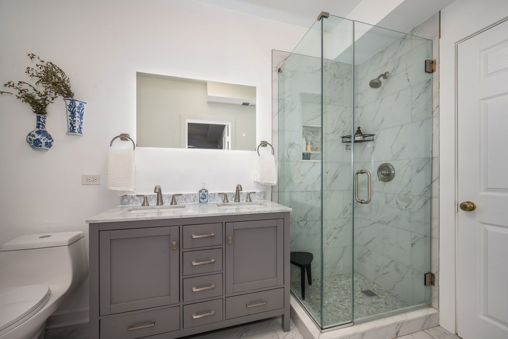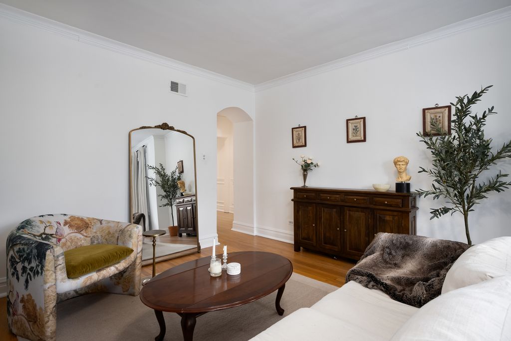 Discover the perfect blend of vintage charm and modern sophistication in this beautifully renovated 2 bed / 1 bath home, ideally situated on a picturesque, tree-lined street in the heart of Lincoln Park. Thoughtfully updated, this elevated first-floor residence showcases refined finishes and meticulous attention to detail throughout. Step into a sun-drenched living space featuring soaring ceilings, hardwood floors, a gas fireplace, and a stunning bay window with tranquil treelined views, creating an inviting setting for both relaxing and entertaining. The updated kitchen offers crisp white cabinetry, granite countertops, and stainless steel appliances, with ample space to incorporate an island or casual dining area. Both bedrooms are generously sized. The primary bedroom en-suites to the recently remodeled bathroom featuring a dual vanity and a sleek, fully tiled walk-in shower. A bright south-facing sunroom provides the perfect flex space for a home office, breakfast nook or fitness area, and leads directly to the patio, ideal for outdoor enjoyment. Additional highlights include custom built-ins and moldings, in-unit washer/dryer, central heat and A/C, and abundant closet space. Located in a well-maintained building with low assessments, this home also includes garage parking (only 4 out of 7 units have parking), storage room and bike storage. All of this in the middle of parks, public transportation, grocery stores, and some of Lincoln Park's best dining and nightlife.