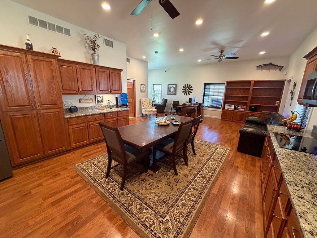 This 9 Yr Old Unique property with its Ultra - Morton Built Barndominium / Shop is a true must see to appreciate! You could not replace this 8500 sq ft building with all of its incredible amenities for this price! Sitting on over 3.35 acres of R1 (rural residential) zoned land, there are many possibilities for a future business. Loads of storage for 50 vehicles inside and nearly 100 vehicles outside! The shop area offers everything you could imagine! Tons of opportunities with what type of business you could house in this incredible building that has over 8500 square feet! The shop has an Air Compressor which all of the shop walls are plumbed, 4 post lift (available for purchase), 2 post lift(available for purchase), and Heated flooring through out with concrete footings with rebar. Solar Panels (monthly ave elec bill is $17), Triple drain in shop area, private bath in shop area, 2 electric car chargers, one solar car charger. All Raynor insulated garage doors sizing from 16x24.5, 16x20.5,16x14.5,16x14. Shop is 60x60, Additional shop area of 60x60. There's tons of opportunity with a storage building business! Over 40 fruit trees including Peach, Cherry & Apple. Your own orchard! There's an additional storage building that is 34x24. The High End living quarters are quite charming and cozy.. You'll get a feeling of Northwoods living with the phenomenal shop area with a loft just out your back door! Just a few of the exceptional amenities are: Granite counter top, custom oak cabinetry, all stainless appliances, Pella windows, walk in whirlpool tub, loads of storage and fantastic views from all the windows. You'll totally enjoy the wrap around screened in porch! Don't delay, call today!