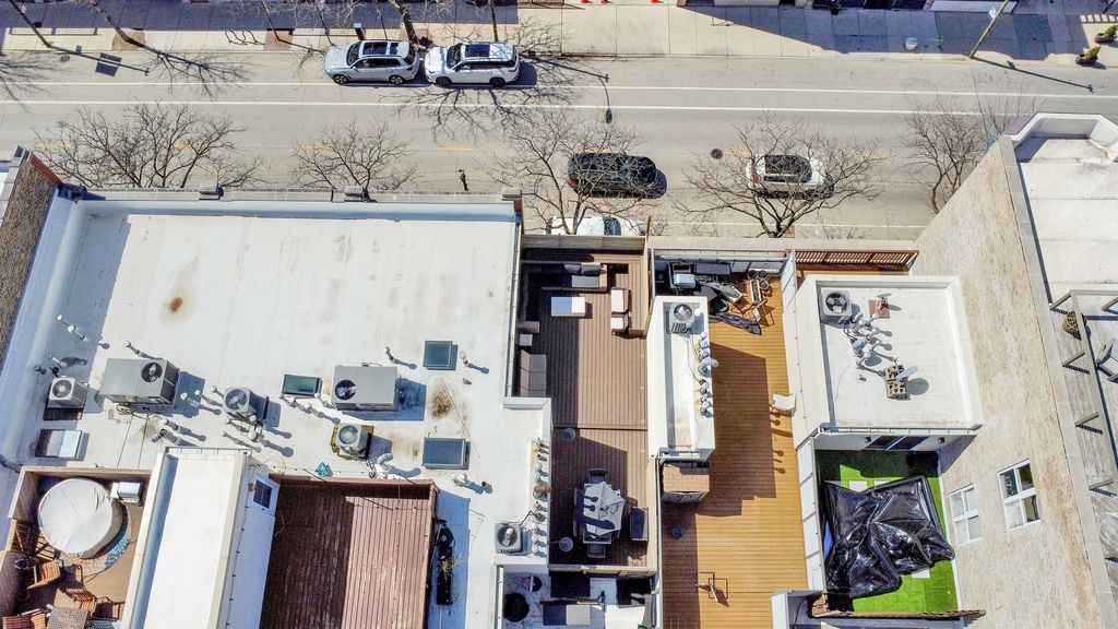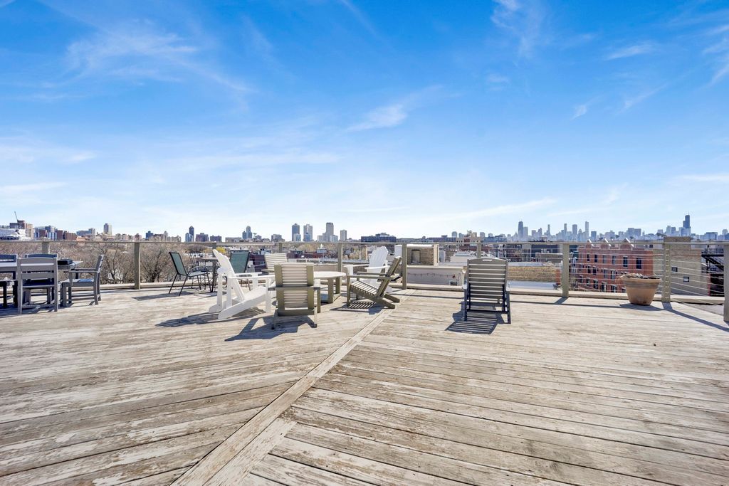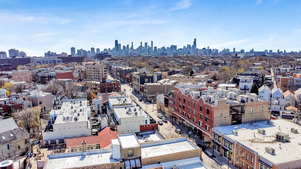 Welcome Home to your stunning Lakeview townhome, perfectly positioned on a charming, tree-lined street and brimming with character at every turn. This 4 bed, 2.5 bath townhome showcases exposed brick, soaring 14-foot steel-beamed ceilings, and rich hardwood floors, creating a warm, elevated aesthetic that feels both timeless and one of a kind. Designed for both everyday living & entertaining, the open concept main level flows effortlessly from a beautifully appointed kitchen, complete with quartz countertops, generous prep space and a pantry. The kitchen leads into a spacious dining area and inviting living room. A versatile first-floor bedroom offers the perfect setup for a home office, guest suite, or flex space tailored to your preference. Upstairs, the primary suite is a true retreat, featuring a private ensuite bath and two walk-in closets. Two additional bedrooms and a full bath complete the upper level, offering both comfort & functionality. Thoughtful details like in-unit laundry on the second level, abundant storage, and two garage parking spaces make everyday living seamless. Take entertaining to new heights on your private rooftop deck, or enjoy the added perk of a second shared roof deck with sweeping city views - perfect for gathering with neighbors & friends! All of this in an unbeatable Lakeview location, just steps from parks, coffee shops, restaurants, grocery stores, fitness studios, daycare options, and the CTA Brown Line. Enjoy the best of city living with exceptional walkability right outside your door. Highest and Best due by 7PM Monday.