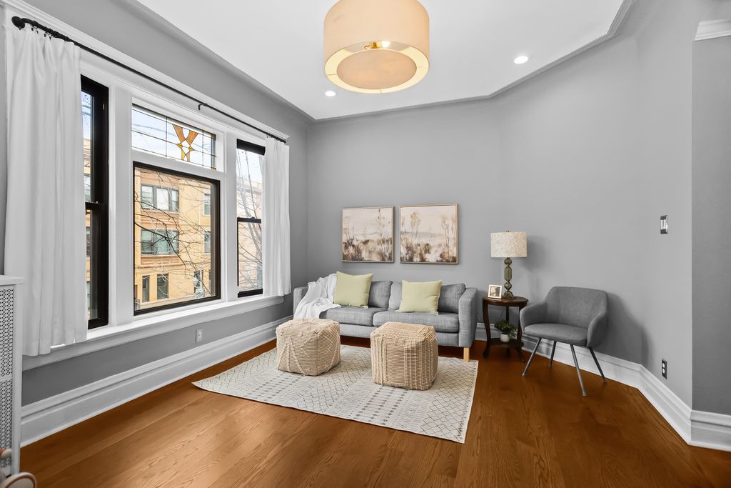 Charming details throughout this upgraded 3 bedroom, 2 bath vintage condo in the heart of Lakeview, striking the perfect balance between historic character and modern upgrades. Entertaining layout with massive private dining room complete with original ornate pocket doors, crown molding, antique knobs, and stained glass. Drenched in natural light with generous windows perched on the second floor. Modern improvements including recently refinished hardwood floors throughout, freshly painted, both bathrooms recently updated, costume made master bedroom closet, and in-unit washer/dryer. All brick and limestone building with original character. Two outdoor spaces including a deck with built-in sound system and balcony off the kitchen, perfect for grilling. Central Air conditioning throughout & radiator heat for winter makes it a win win situation! Conveniently located walking distance to both the Southport Corridor and the lakefront, blocks from Wrigley Field, and zoned for highly rated Nettelhorst Elementary. HOA includes heat and gas, with adjacent parking option available. Rental parking space behind the unit is ongoing $225 a month! Meticulously cared for home in a perfect location - schedule your viewing today!