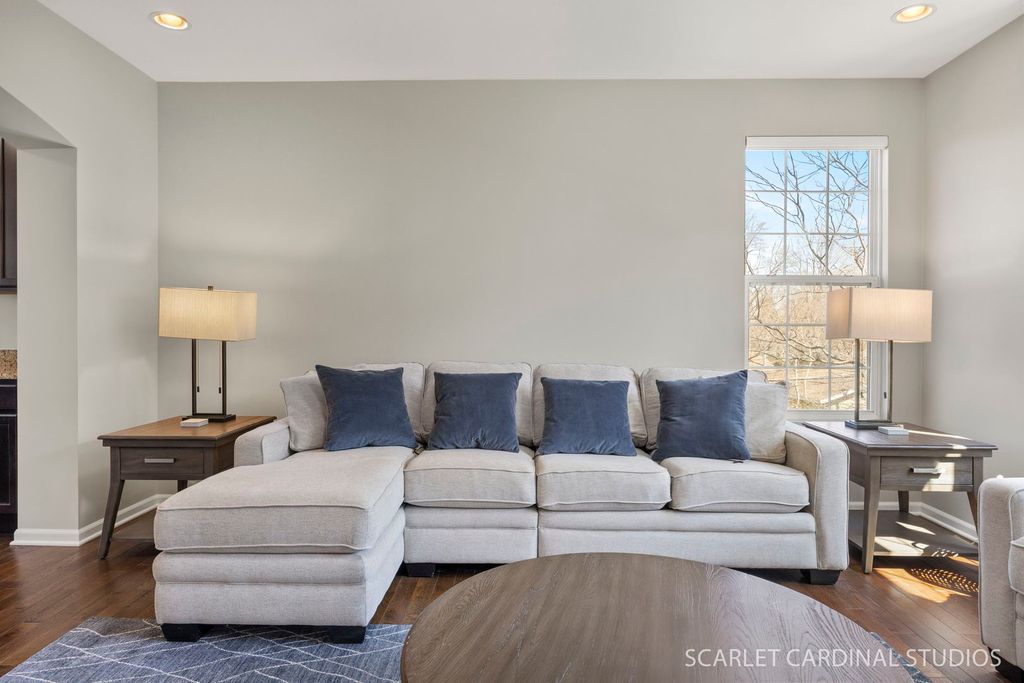 Welcome to 259 Bennett Drive in Carol Stream-a beautifully maintained 3-level end-unit townhome that perfectly blends modern style with everyday functionality. This spacious 2-bedroom, 2.5-bath home features an open floor plan filled with natural light streaming through large windows, creating a warm and inviting atmosphere throughout. The main living area flows seamlessly into the eat-in kitchen, complete with a center island, stainless steel appliances, and stylish industrial-chic lighting-ideal for both entertaining and daily living. Just off the main living space, enjoy a spacious private balcony-perfect for relaxing or entertaining outdoors. Upstairs, both generously sized bedrooms offer the ultimate privacy, each featuring its own en-suite bathroom and custom closet organizers for optimal storage and convenience. Premium flooring and plush carpeting add a touch of luxury throughout the home. The main level includes a convenient laundry room, while the lower level provides additional flexible space along with ample storage. The attached 2-car garage offers even more room for organization. Freshly painted and move-in ready, this home has been meticulously cared for from top to bottom. As a tucked-away end unit, this home offers a unique sense of privacy within a well-maintained community that also features abundant guest parking. With rental flexibility allowed, it's a fantastic opportunity for both homeowners and investors alike. Don't miss the opportunity to own this bright, stylish, and highly functional townhome in a desirable Carol Stream location!