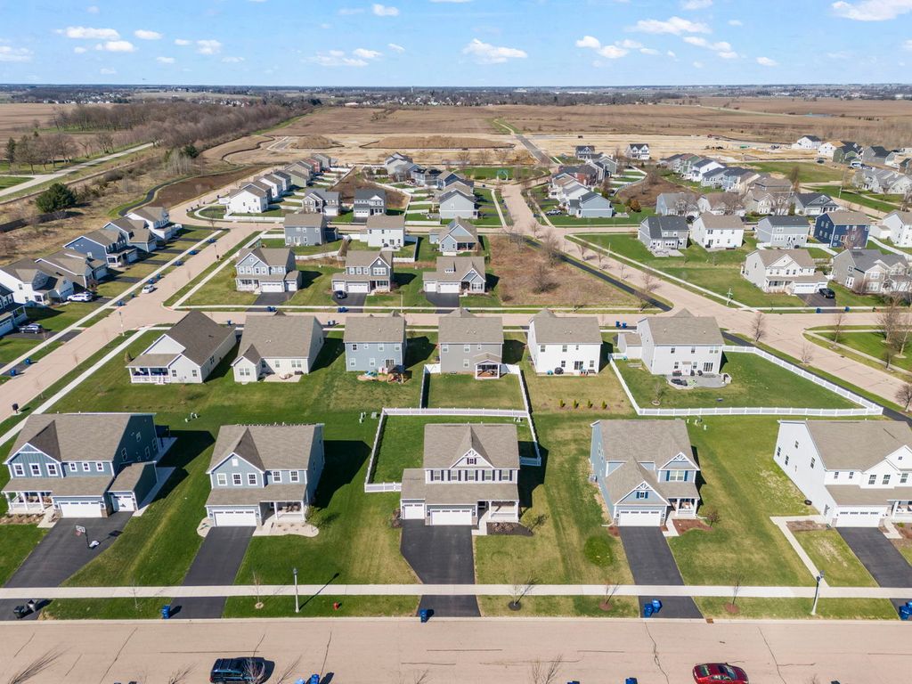 Completed in 2023 and thoughtfully enhanced throughout, this Sugar Grove home offers a stylish, functional layout in a prime location near highly rated schools, parks, I-88, shopping, and dining. The main floor features a bright, open design with durable waterproof luxury vinyl flooring, connecting the living, dining, and great room spaces. The kitchen stands out with granite countertops, a large island, tile backsplash, and a French-door pantry, along with a convenient powder room. Upstairs, the primary suite provides a spacious retreat with a walk-in closet and a well-appointed bath with dual vanities and a walk-in shower. Two additional bedrooms and a flexible loft space offer room to grow, with the option to create a fourth bedroom. The finished basement expands the living space with a cozy fireplace, bar area, full bathroom, bedroom, and a bonus room ideal for an office or workout space. Outside, enjoy a large backyard with a concrete patio, pergola, and new PVC fence (2024), plus a 3-car garage-making this a truly turnkey home with 4 bedrooms and 3.1 baths.