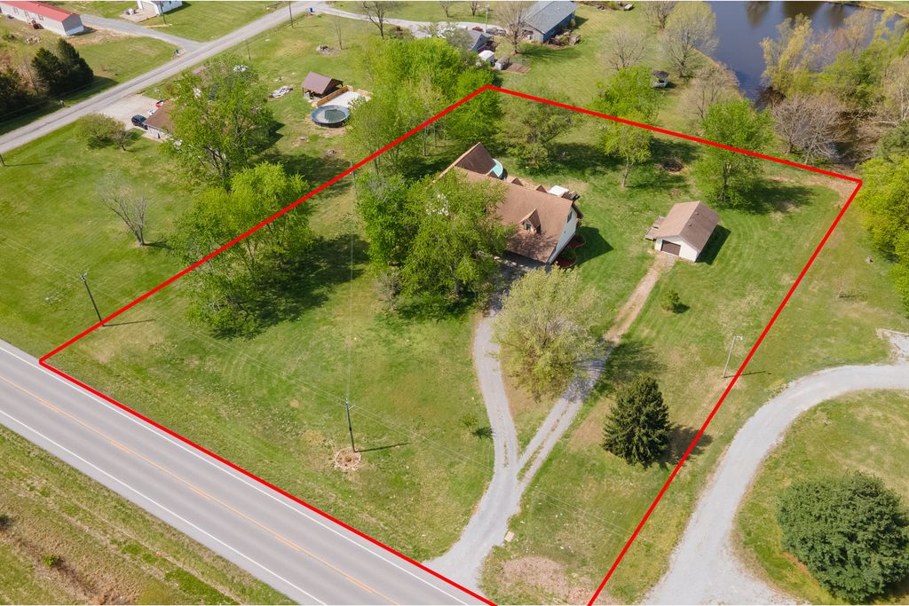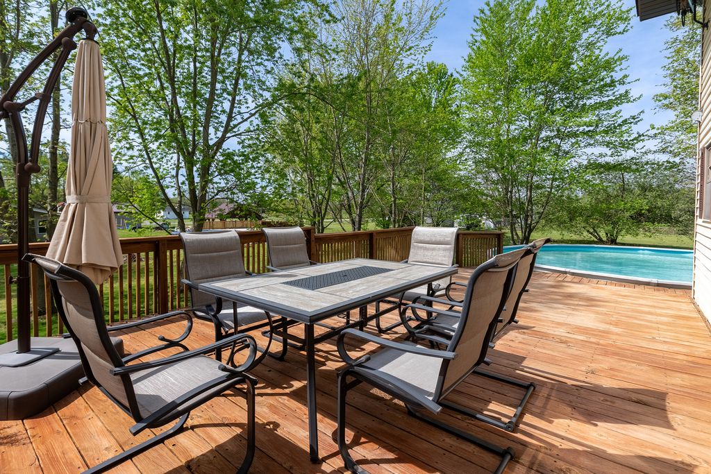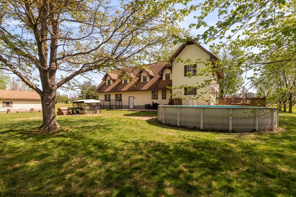 Your rural paradise awaits and just in time for summer! Fall in love with this stunning two-story home nestled on 1.75 acres, complete with a full basement, raised back deck, and above ground pool. From the moment you step inside, a gorgeous wooden staircase and open landing set the tone in the generous living room, where a picture window and clerestory window flood the space with natural light. Just beyond, the sun-drenched open-concept dining room flows seamlessly into a large kitchen outfitted with wooden cabinets, abundant counter space, crisp white appliances (including a brand new oven with hood range), and a convenient built-in breakfast bar. Upstairs, a versatile bonus room currently serves as a home office before leading into the expansive primary suite, which is bathed in natural light and anchored by a well-appointed primary bath featuring both a shower/tub combo and a standalone jetted tub. Down the hall, two charming dormer bedrooms with double closets share a well-placed full bathroom, making the upper level as functional as it is inviting. The full unfinished basement offers endless possibilities, whether you're envisioning extra living space, a hobby room, or simply generous storage. The attached oversized two-car garage impresses with soaring 12-foot ceilings, and a detached one-car garage provides even more room for parking and storage. Outside, the covered front porch, raised back deck, above ground pool, and back patio create the perfect backdrop for warm-weather entertaining and making memories with loved ones. Don't miss your chance to make this one yours!