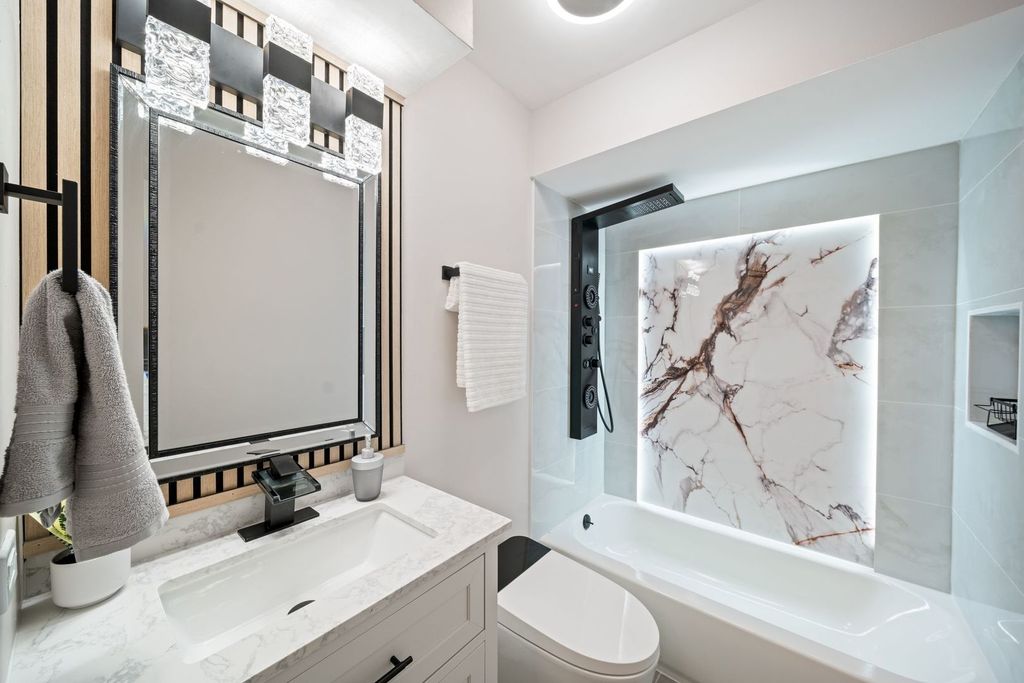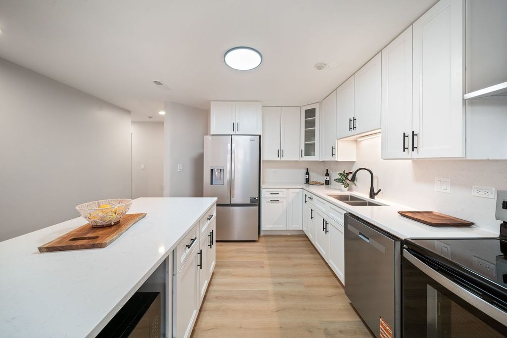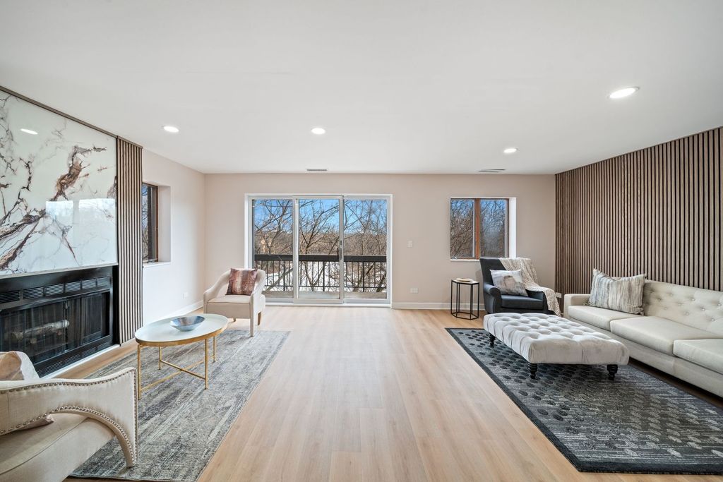 Completely newly rehabbed and move-in ready, this beautifully updated top-floor 2-bedroom, 2-bath condo offers modern finishes, a spacious layout, and serene pond views in an intimate, quiet building. Step into a bright and airy living space featuring wide-plank flooring throughout, large windows with sunny exposures, and a generous living room with a stylish fireplace. Sliding glass doors lead to a large private balcony with treetop views overlooking the pond - the perfect spot to relax or entertain. The fully renovated eat-in kitchen showcases white shaker cabinetry, quartz countertops, all brand-new stainless steel appliances, modern hardware, and a spacious island with seating. Thoughtful design and abundant cabinetry provide both functionality and style. The expansive primary suite includes a walk-in closet and a stunningly updated en-suite bath featuring a double vanity and designer finishes. The second bedroom offers a wall of closets and easy access to the beautifully remodeled hall bath. Additional highlights include: Full-sized in-unit laundry room All new appliances and updated fixtures throughout 2 garage parking spaces 1 dedicated storage space Top-floor privacy Quiet, well-maintained building Located in a prime Lincolnshire location within award-winning Lincolnshire schools and Stevenson High School district. This is a rare opportunity to own a fully renovated, turnkey home with modern finishes, generous space, and tranquil views in one of the area's most desirable communities.