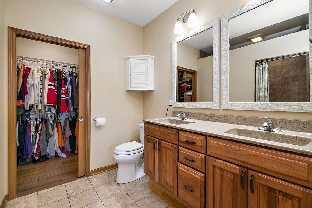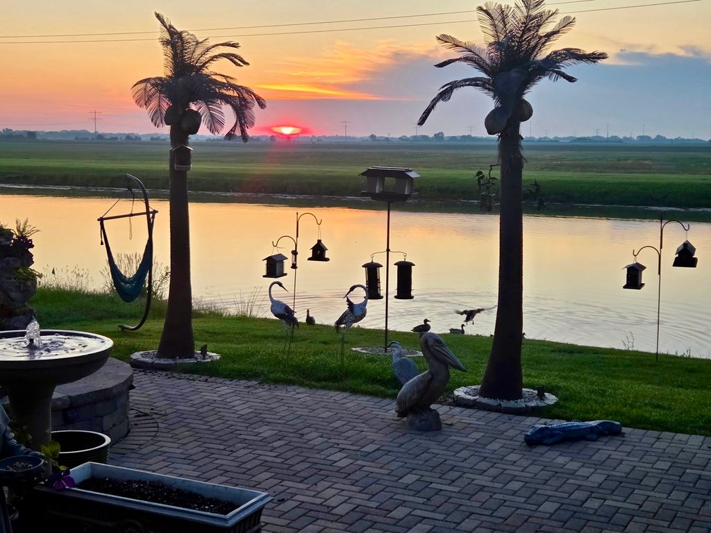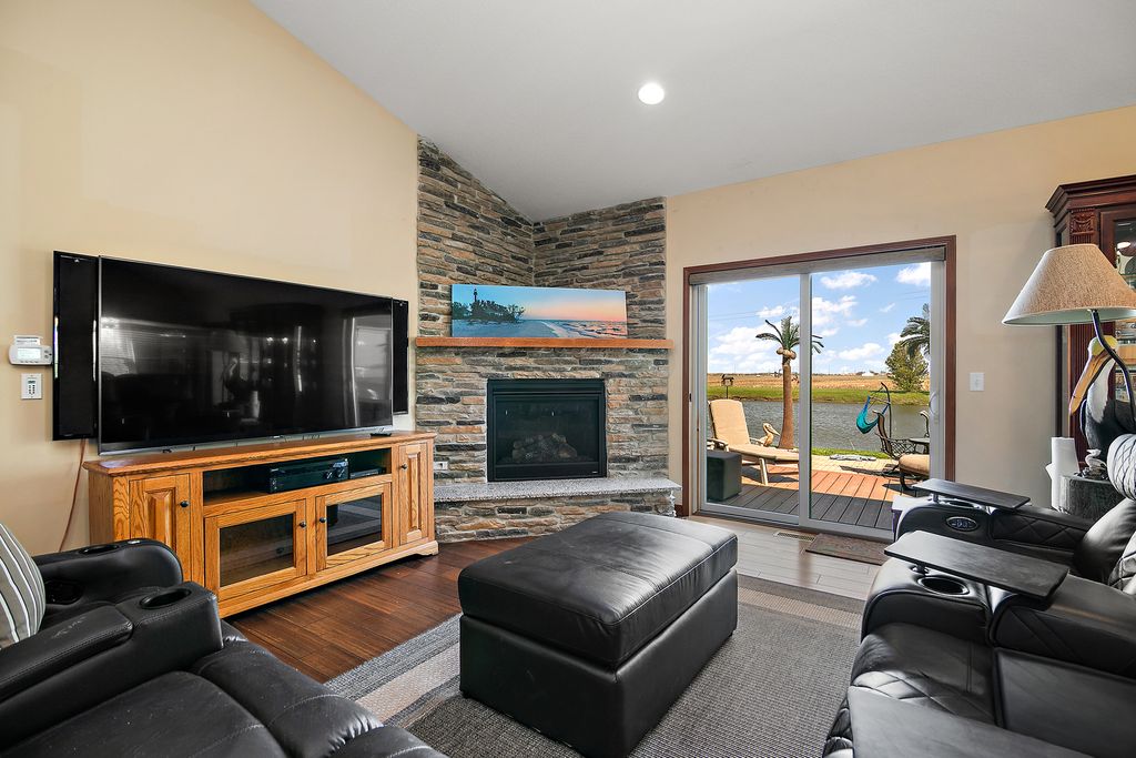 Beautifully maintained 4 bedroom, 3 bath, Water front Ranch style home on a finished basement in desirable Stone Mill Farms. Built in 2016, this custom home by Warburton offers an open concept layout with 9' and vaulted ceilings, rich hand scraped hardwood floors and quality finishes throughout. The kitchen features custom cabinetry, granite countertops, a large tiered island, stainless steel appliances, and flows seamlessly into the dining area and living room anchored by a floor to ceiling stone fireplace. The sunroom provides additional living space filled with natural light and overlooks the water. The primary suite includes a spacious walk in closet and private bath with double vanity and tiled walk-in shower. The desirable floor plan offers bedrooms two and three with a full bath in between. The finished basement offers a large family/rec room, 4th bedroom, full bath, and abundant storage/workspace. Situated on a premium corner lot, the backyard is designed for entertaining with a composite deck, expansive paver patio, built-in fire pit, and unobstructed pond views and amazing sunrises! Additional highlights include a finished 3 car garage with epoxy floor, cabinetry, and storage. Move-in ready with thoughtful upgrades inside and out.