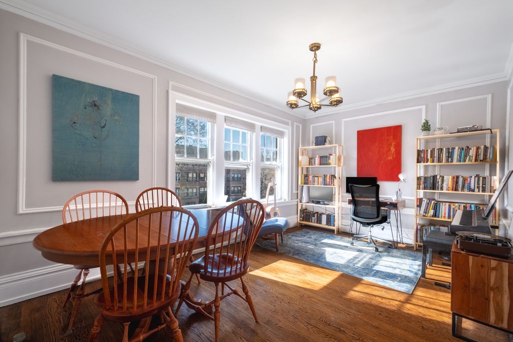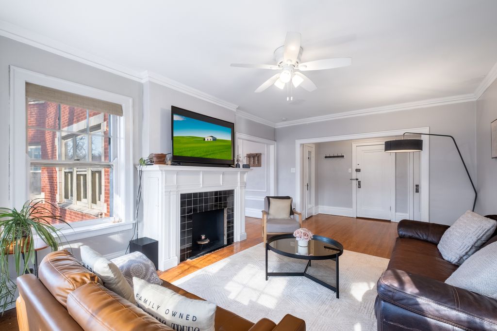 This charming condo features beautiful hardwood floors throughout, creating a warm and inviting atmosphere in every room. The spacious living area is enhanced by a decorative fireplace and flooded with abundant natural light, making it a perfect spot to relax or entertain. A classic galley kitchen offers efficient functionality and flows seamlessly into the formal dining room, ideal for hosting dinners and gatherings. Two generously sized bedrooms provide comfortable retreats with ample space for rest and relaxation. Laundry and storage on site.