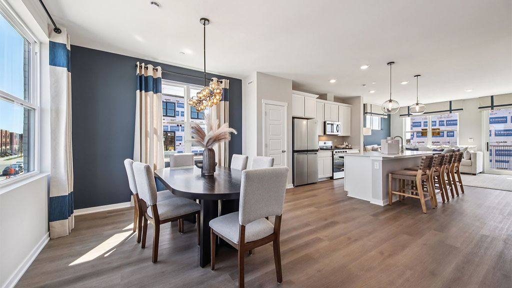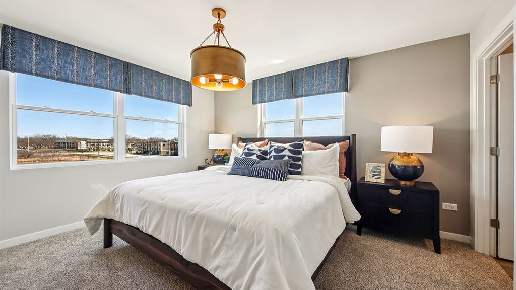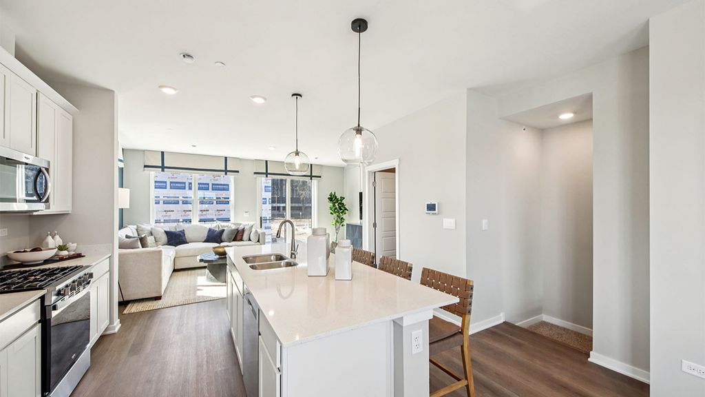SELLING NOW!! NEW CONSTRUCTION NEW LAYOUT TOWNHOME: AUGUST MOVE IN! Find your way to 2221 Waters Edge Dr. Schaumburg, Illinois, our newest phase of brand-new construction with new modern style townhomes in our HIGHLY DESIRABLE NORTHGATE AT VERIDIAN community. This new construction townhome is ready for you to move in Summertime! Homesite includes a fully sodded yard with landscaping. This Grant style townhouse offers approx. 1838 square feet of living space with 3 bedrooms, 2.5 baths, and a finished flex room. The finished flex room is perfect for a home office or playroom. Walking up the stairs to the main level you will find this home's open concept living with 9-foot ceilings and luxury vinyl plank flooring throughout the entire main level! The expansive kitchen features a large island that is ideal for everyday living and overlooks both the front dining and back great room areas, making it the perfect space to entertain. Additionally, your kitchen includes Quartz countertops, 42" cabinetry with soft close doors and crown molding, stainless steel appliances and a pantry. Arriving at the top floor, you'll find the primary suite, secondary bedrooms with a full second bath, linen closet, and laundry room. The spacious primary bedroom suite includes a bright large walk-in closet with window and connecting en-suite bathroom, featuring a walk-in shower. This Chicago home includes our America's Smart Home Technology. Photos are of a similar home. Actual home built may vary.