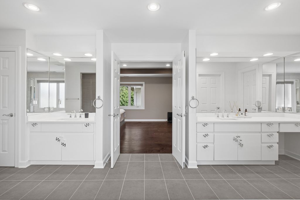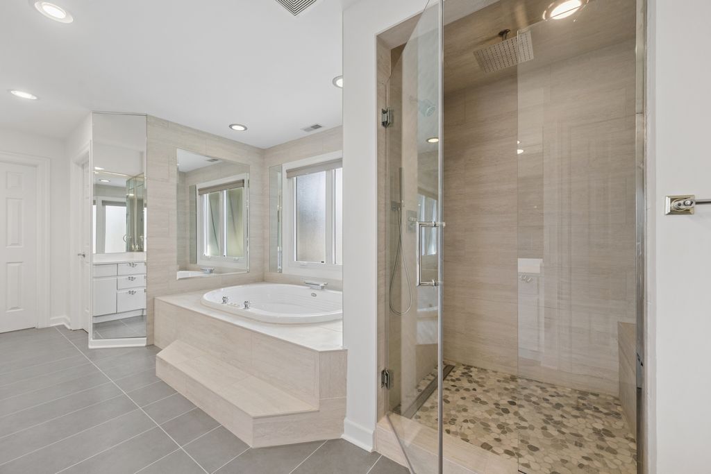 Extensively updated and meticulously maintained, over 4000sqf above ground contemporary corner home in Northbrook in the district 28 and 225! Step through the brand-new front door (2021) into a soaring two-story foyer, the sunshine welcomes you. The open floorplan flows effortlessly from the formal living and dining spaces into a completely remodeled chef's kitchen (2015) featuring custom cabinetry, granite countertops, and top-of-the-line stainless appliances, including a new refrigerator, dishwasher, and washer/dryer (all 2023). The dramatic two-story family room with vaulted ceilings and gas fireplace anchors the main level, while a first-floor ensuite bedroom offers ideal flexibility for guests or a home office. The primary suite is a true sanctuary, featuring a bath fully renovated in 2026 with all-new tile, countertops, shower enclosure, and fresh paint - backed by a contractor warranty. Secondary bathrooms were updated in 2018, and every bedroom enjoys the privacy of its own ensuite bath. The fully finished basement rounds out the home's exceptional livability adding extra 2000sqf approximately, making the total indoor space over 6000sqf, with new carpet (2020), a dedicated home theater (2015), recreation and play spaces, and sump pump preventative maintenance covered through 2027. Major mechanicals have been systematically replaced for total peace of mind: the roof is brand new (March 2022), virtually all windows were replaced in 2021 (including patio doors), both zoned HVAC units were replaced in 2018(furnaces) and 2024(ACs), and the water heater was updated in 2020. Two EV chargers were added to the 3-car garage in 2023, along with a new MyQ smart garage door opener. Just move right in and enjoy everything this home has to offer!