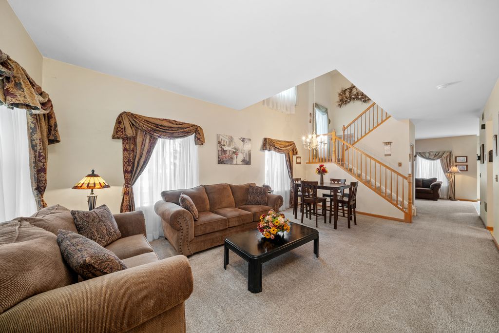 This turnkey home is move in ready! Large Drake model 1/2 duplex with a fenced yard has many recent updates. 3 bedrooms, 2 1/2 bath and a deep single car garage PLUS a gas log fireplace make this home the perfect, affordable family home. The first floor has an eat-in kitchen, family room with a gas fireplace and a living/dining room combo with high ceilings. Upstairs the large master suite has an attached sitting room, private bath and walk in closet and the other two bedrooms are at the opposite end of the hall. Laundry room is conveniently located upstairs as well! Roof, carpet and all appliances new in 2020, furnace, a/c & water heater new in 2014. All furniture stays and most was new in 2020.