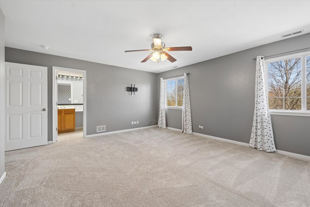 Beautifully updated townhome in sought-after Winding Creek! Offering almost 2,300 sq ft of finished living space, this home features 3 bedrooms, 3.1 baths, and a full finished basement providing incredible space and value. The eat-in kitchen showcases granite countertops, stainless steel appliances, and plenty of cabinet space, while the living room features gleaming wood floors and a warm, inviting feel. Upstairs, enjoy the convenience of a second-floor laundry room and 3 generously sized bedrooms all with new carpet, ceiling fans, and ample closet space. The primary suite includes a private bath and walk-in closet. The finished basement adds even more versatility with a bonus room, full bath, family room, and abundant storage perfect for guests, a home office, or additional living space. Step outside to your private patio with lush landscaping. Spacious 2 car garage with tall ceilings. Ideally located near nature preserves, bike and walking paths, restaurants, and shopping.