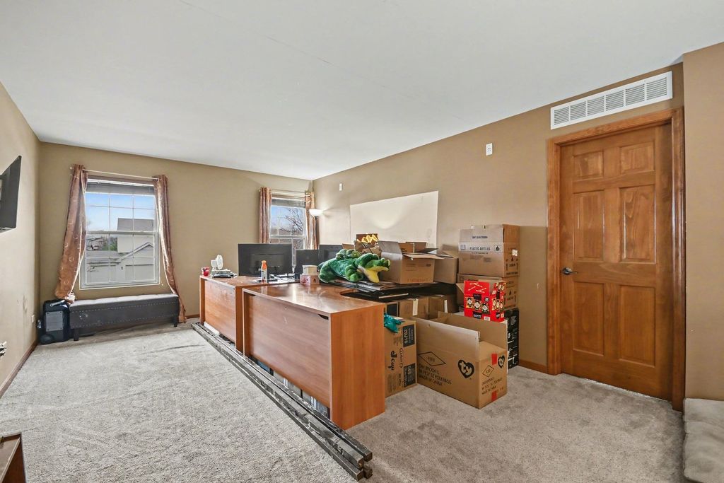 Welcome to this stunning and beautifully updated 4-bedroom, 2.5-bath residence offering nearly 3,000 square feet of thoughtfully designed living space, perfectly nestled in the highly sought-after Liberty Grove subdivision. From the moment you step inside, you are greeted by warm, inviting finishes and an abundance of natural light that flows effortlessly throughout the home. The heart of the home is the tastefully updated kitchen, featuring elegantly refaced cabinetry, gleaming granite countertops, stylish upgraded light fixtures, and premium KitchenAid stainless steel appliances. Richly resurfaced hardwood floors extend through the kitchen and foyer, creating a seamless and sophisticated feel. Just off the kitchen, the sun-drenched family room offers the perfect space to relax or entertain, highlighted by a gorgeous brick fireplace and a newly installed ceiling fan that adds both comfort and charm. The main level also features a versatile den or private home office, ideal for today's flexible lifestyle, along with the convenience of first-floor laundry. As you make your way upstairs, a spacious and airy loft provides the perfect secondary living space, reading nook, or play area. The expansive primary suite is truly a retreat, complete with two separate closets and a luxurious private bath featuring dual vanities, a soothing soaker tub, and ample space to unwind. Three additional generously sized bedrooms and a well-appointed hall bath complete the upper level, offering comfort and functionality for family and guests alike. The fully finished basement is an entertainer's dream and adds incredible versatility, boasting a second kitchen with sleek quartz countertops, a large recreational area perfect for gatherings, a full bathroom with a relaxing jetted tub, and two additional rooms with wall-to-wall closets-ideal for guest accommodations, home gym, or creative spaces. Modern epoxy flooring enhances both durability and style. Peace of mind comes with numerous recent updates, including a brand-new HVAC system (2025), new water heater (2025), and ejector pump (2024), along with a roof approximately 10 years old. Step outside to your own private backyard oasis, complete with cozy firepit area perfect for evening gatherings, a storage shed, and a playset-creating the ideal setting for outdoor enjoyment and entertaining. Ideally located within highly acclaimed Plainfield School District 202, this home offers close proximity to neighborhood parks, scenic walking paths, and lush green spaces. Enjoy easy access to vibrant downtown Plainfield, shopping, dining, the DuPage River Trail, and the natural beauty of Lake Renwick Preserve. Walking distance to Lincoln Elementary School. Residents also enjoy fantastic neighborhood amenities which include a pool, enhancing the overall lifestyle experience.