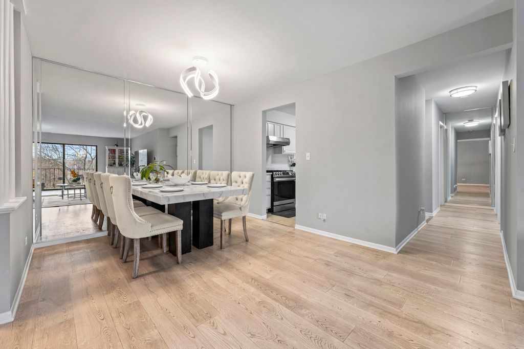Spacious 3-bedroom, 2-bath third-floor elevator condo in a desirable Glenbrook North High school. Bright and open living and dining areas offer abundant natural light and access to a private balcony overlooking a pond, creating a comfortable and inviting setting. Updates within the past five years include painted white kitchen cabinetry, Cortez countertops, white backsplash, living room flooring, and improvements to the hallway bathroom shower. Additional updates include a new AC and furnace in 2025. Well-sized bedrooms include a primary suite with a private bathroom. The building offers amenities including a pool, tennis courts, and a clubhouse. Conveniently located near schools, shopping, dining, and major highways, with easy access to downtown Northbrook and the Metra.
