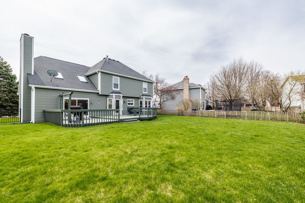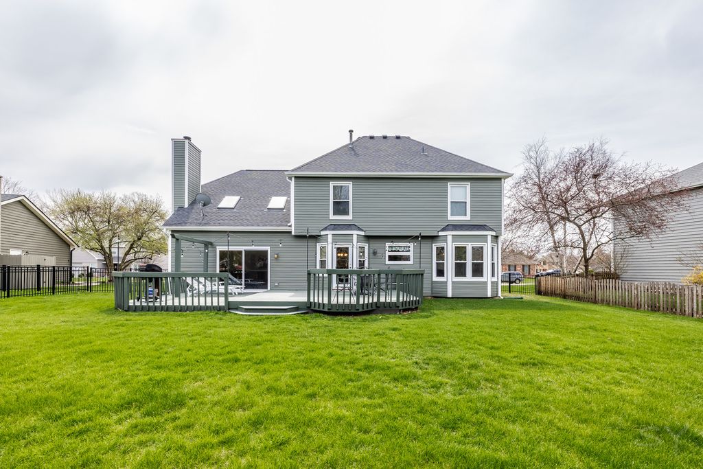 Beautiful 4 bed/2.5 bath 2 story home in the sought after Oakhurst subdivision. First floor features a large living room and a spacious dining room. Through the large kitchen you will find a beautiful family room featuring vaulted ceilings and a fireplace. First floor laundry, as well. Upstairs you will find 4 large bedrooms, including a massive master suite with ensuite bathroom and a walk-in closet. The fully finished basement has tons of space for an office/additional bedroom, living room, workout area or so much more! Enjoy the secluded fenced in yard and deck. 1/4 acre lot. Furnace-2020, AC-2021, Brand new Roof, siding and gutters-2023, sump pump-2025