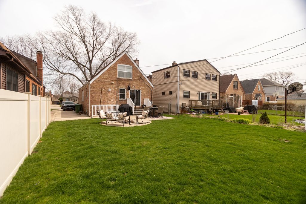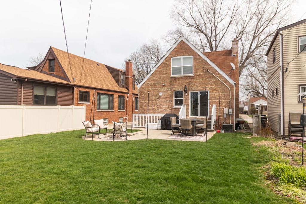 There's No Place Like Home! Welcome to this adorable Evergreen Park home located in the desirable southwest quadrant of town. Full of charm, warmth, and inviting character throughout! Beautiful wide-plank wood laminate floors flow seamlessly through the main living spaces, creating a cozy yet modern feel. The updated kitchen features an eat-in area along with a stylish bar space complete with a beverage fridge-perfect for everyday living and entertaining. The main floor features a spacious first-floor bedroom and full bathroom. Upstairs, you'll find two additional bedrooms and another full bath. The finished basement is truly the place to be, featuring a large family room and bar area designed for hosting and relaxing. Step outside to a backyard built for gathering, complete with a fantastic built-in fire pit-perfect for enjoying evenings year-round. This home combines charm, functionality, and great entertaining space both inside and out in an unbeatable location-don't miss it!
