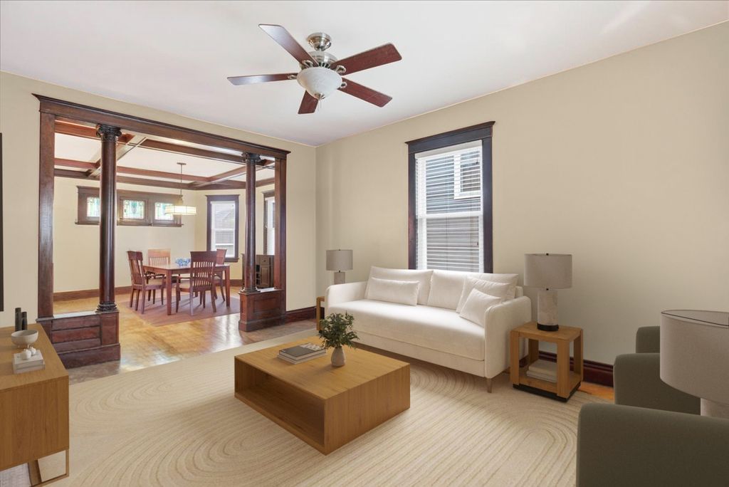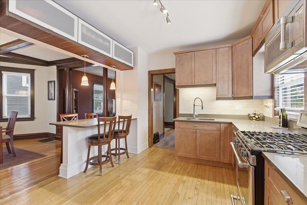 Welcome to this lovely, well-kept Victorian single family home in Old Irving Park! Upon entering, you are met with a charming, serene and updated front porch that includes recessed lighting and is perfect for sitting during the warmer months. The foyer greets you with sightlines to the living room, kitchen and main staircase. This home has tons of character, including ornate wood pillars that separate the living room and dining room. The dining room features wood beams on the ceiling and stained-glass windows. The kitchen, renovated in 2017, includes quartz countertops and a breakfast bar that opens to the dining room. There is also a pantry and powder room on the main level. This home has a very functional layout with 4 good-sized bedrooms and a full bath on the second level. The renovated basement has a second, cozy living space and a full bath. There is a utility room with laundry and plenty of storage. The deck off the kitchen overlooks the backyard, which has a birch tree, trumpet vine along the fence line and blooming flowers in Spring and Summer months. The roof was new in 2019 (full tear-off), Furnace and A/C new in 2022 and HWH new in ~2020. This home is within Belding Elementary school boundaries and the school is only 4 blocks away. Great access to the Blue Line, Metra and 90/94 for easy commuting to the city, O'Hare or suburbs! Many great dining options nearby including Old Irving Brewery, Eris Cider and Brewery, CTA Tacos, Breakfast House, Starbucks, Backlot Coffee...and even more at nearby 6 Corners! Many parks close by including Kolmar Playlot, Mayfair Park, Belding park, and Independence Park (with Farmer's Market).