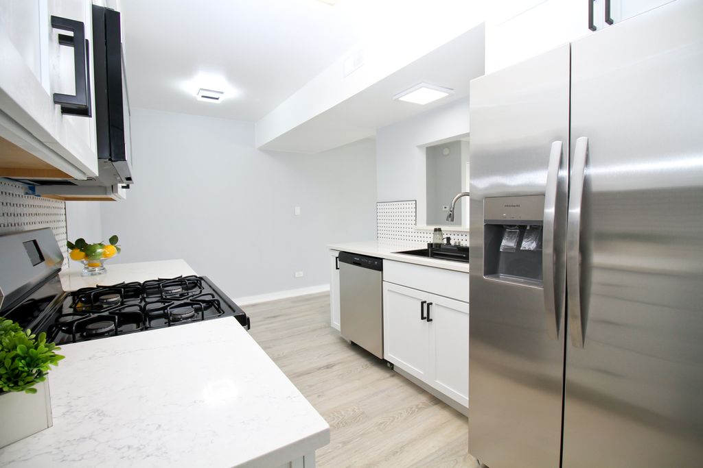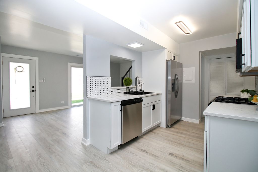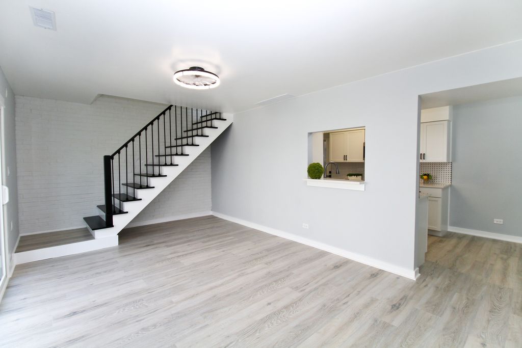 WELCOME HOME! COMPLETELY GUT-REHABBED with a modern edge, this stunning 2-bedroom, 1.1-bath, 2-story townhome with a 1-car attached garage truly feels brand new from top to bottom. Featuring a brand-new furnace, A/C, water heater, windows, and doors. The beautifully remodeled eat-in kitchen showcases soft-close cabinets, stainless steel appliances, granite countertops, elegant backsplash, and a modern sink. The bright and spacious living room offers a new 8-ft patio door leading to a charming small patio area-perfect for relaxing or entertaining. Both bathrooms are fully updated with contemporary finishes. The main bath features marble-look porcelain flooring, a sleek tub/shower with wood-look panels, bold black herringbone accent, matte black fixtures, a backlit LED mirror, and a textured stone accent wall. Upstairs includes a convenient in-unit laundry closet with brand new washer and dryer, two generously sized bedrooms with modern lighting and ample closet space, including a large walk-in closet in the primary bedroom. New laminate flooring runs throughout, complemented by crisp white doors, trim, sleek black hardware, and new baseboards. The staircase has been upgraded with a brand-new railing. SUPER LOW ASSOCIATION $177.26 Excellent location in close proximity to downtown Bartlett and the Bartlett Metra train station. Investors friendly! Easy to show. THIS IS WHERE DREAMS COME TRUE!