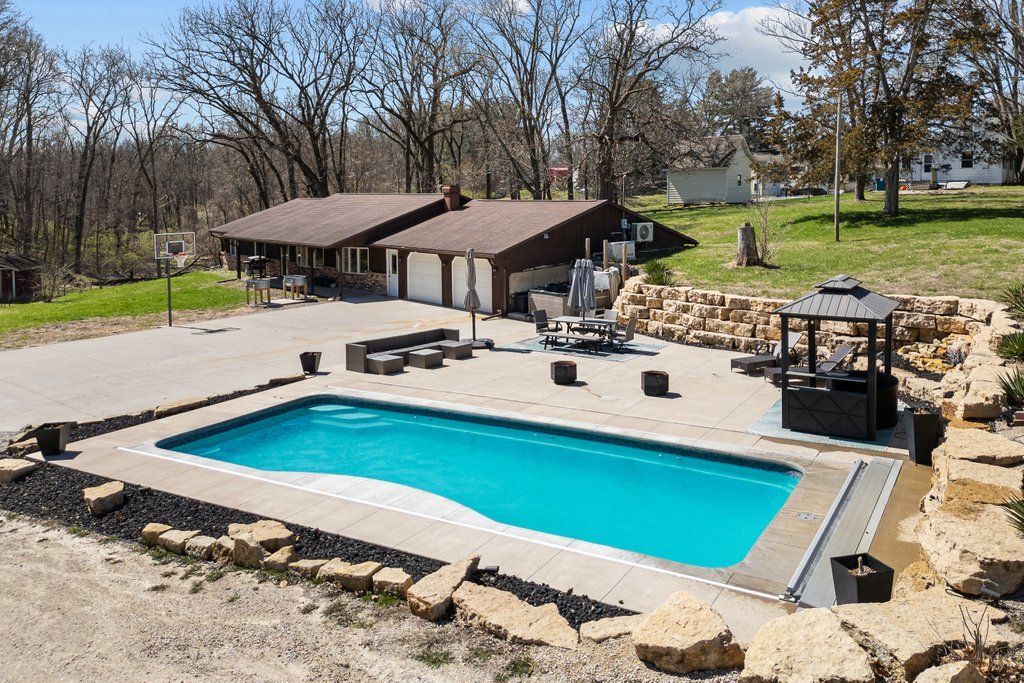 Nestled on nearly 3 private acres in scenic Port Byron, this unique ranch-style home offers the perfect blend of peaceful country living and everyday convenience. Built in 1979, the home features approximately 2,000+ square feet of living space with 3 bedrooms and 2 bathrooms, designed for comfortable, single-level living. Surrounded by mature trees and natural landscape, the property provides a serene setting complete with a creek and a unique bridge, creating a truly picturesque environment. Looking for an outdoor oasis?! This home includes a inground pool (2021) and hot tub with beautiful landscaping. Inside, the home has seen numerous updates, including a fully remodeled kitchen (2026), remodeled bathrooms (2020) flooring (2021), paint (2024/2026), updated appliances, newer mechanicals, a tankless water heater, updated electrical service, and a whole house generator ensuring modern functionality while maintaining its cozy character. The spacious layout allows for comfortable living and entertaining. Additional features include a large attached garage with ample attic storage. There is an oversized yard shed for additional storage. The nearly 3-acre lot offers endless opportunities for outdoor enjoyment, gardening, or simply relaxing in a quiet, wooded setting. Despite its secluded feel, the home is located just minutes from the Mississippi River and nearby golf courses. This property offers recreation and is ideal for those seeking privacy, space, and a connection to nature all within a short drive of town amenities. Located in Riverdale School District.