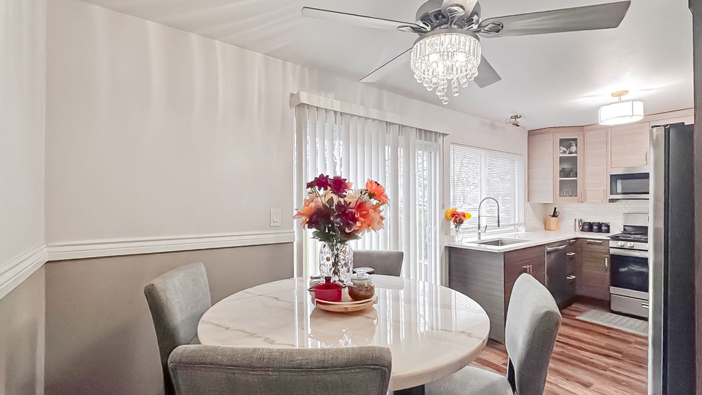 Welcome to your dream townhouse! This beautifully remodeled two-story home offers 3 bedrooms and 1.1 baths, with gleaming hardwood floors, updated bathrooms, and newer windows that fill every room with natural light. The bright, open kitchen boasts stainless steel appliances and quartz countertops-perfect for cooking, entertaining, or gathering with loved ones. Step outside to your private patio, ideal for morning coffee, weekend relaxation, or hosting friends and family. Nestled on a quiet, family-friendly street with easy access to top-rated schools, this home combines modern comfort, cozy charm, and convenience-everything you need to live your best life.