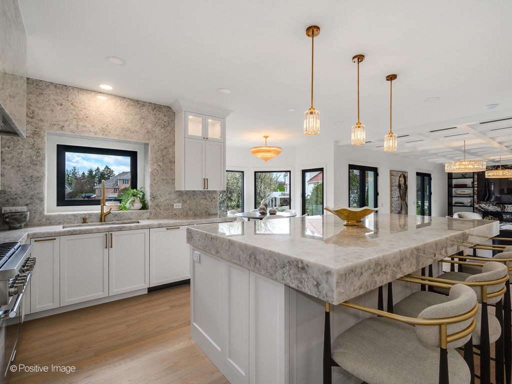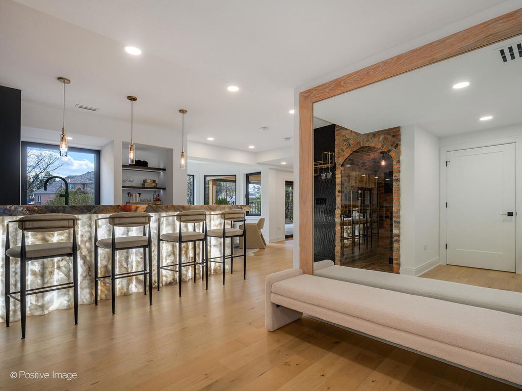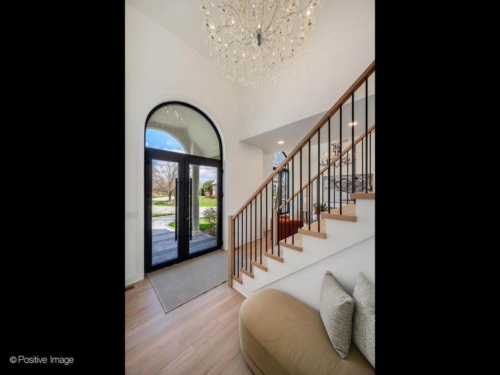 Set within Burr Ridge's prestigious gated community of Falling Waters, this Old World European inspired waterfront estate blends timeless architectural character with luxurious four level living, refined interiors, and serene natural surroundings. Positioned on over half an acre within an exclusive enclave of custom residences designed to preserve the area's natural beauty, the setting is defined by rolling hills, ponds, streams, and mature trees that create a rare sense of privacy and calm. Entering the home, you are greeted by a grand foyer crowned with a massive crystal chandelier. The home opens into a refined kitchen that is appointed with Thermador appliances and anchored by an impressive massive quartzite island, with quartzite carried throughout the rest of the kitchen for a seamless and elevated finish. To the left of the kitchen, the dining room and lounge area offer a beautiful setting enhanced by architectural beams and vaulted ceilings. This level includes an additional bedroom and a full bathroom, offering flexibility for guests or a private office arrangement. The second floor is a true serenity retreat. The primary suite offers a luxurious private escape, complete with two walk in closets and a grand ensuite bathroom. Three additional generously sized bedrooms and two full bathrooms complete this level, providing both space and privacy with a thoughtful layout. Up the structural staircase, you will find one of the home's most magical spaces, a fully finished attic with a full bathroom and a distinct playroom feel. Enhanced by decorative climbing holds and filled with charm, this level offers a whimsical yet functional retreat that can serve as a creative lounge, play space, hideaway, or flex room unlike anything else in the home. The crown jewel of the home is the expansive entertaining level below. The fully finished walk out lower level is designed to impress, featuring an open lounge room, a show stopping wet bar, a temperature controlled wine room with stunning red brick detail, an additional guest bedroom, two full bathrooms, a private movie room, a Himalayan salt sauna, and a gas fireplace that adds warmth and ambiance. With direct walk out access to the home's private outdoor retreat, beautifully landscaped backyard where the in ground pool becomes the true focal point, all set against tranquil water views. Additional highlights include all bathrooms finished with marble tile and heated floors, two laundry areas including one full laundry room and one additional laundry closet, and a heated three car garage equipped for EV charging. This is a rare opportunity to own a truly distinctive waterfront estate in one of Burr Ridge's most sought after gated communities.