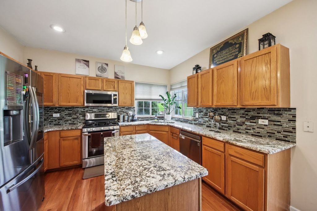 Experience premium golf course living in this meticulously maintained 4-bedroom, 2.1-bath home in the desirable Amber Grove subdivision. One of the largest models available, the residence features a grand two-story foyer and 9-foot ceilings on the main level. Major mechanical updates provide peace of mind, including a new furnace and AC/condenser (2020). The heart of the home is the spacious kitchen, complete with brand-new appliances (2024), which flows seamlessly into a family room with panoramic views of the greens. The second level features a fully updated full bath (May 2025), while the main level offers a refreshed half bath (2023). Retreat to the primary suite with its own soaking tub and separate shower. The finished basement adds versatile recreation and storage space. Enjoy a tranquil setting with a backyard that opens directly onto the golf course. Prime location near the Metra, parks, and Villa Olivia. Highly rated schools and plenty to do nearby. Located a short distance to shopping, restaurants, & entertainment. Quick commute to 59, 20, & downtown Bartlett Metra.