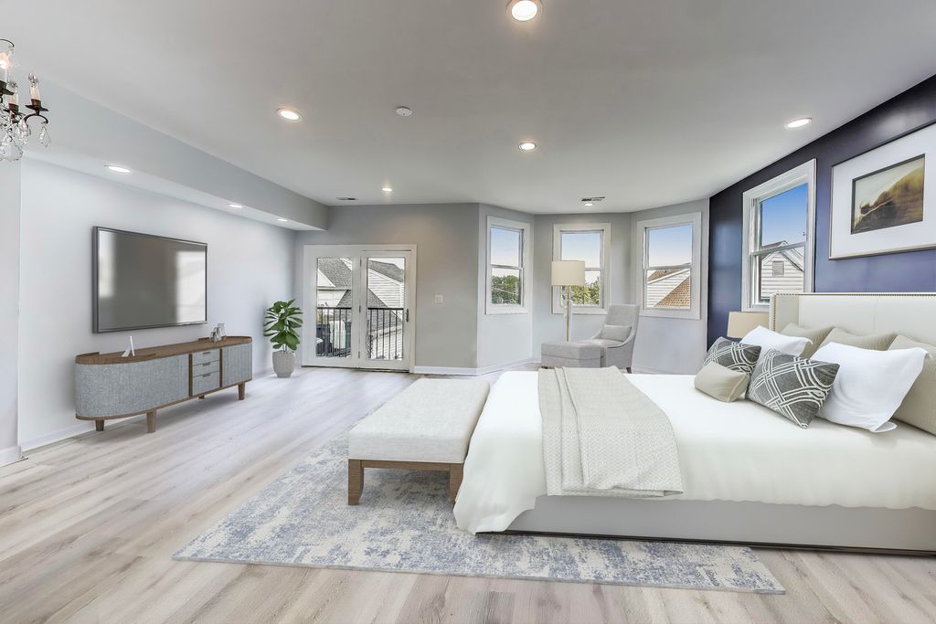 Spanning three spacious levels and situated on an extra-deep 30' x 155' lot, this expansive 5-bedroom, 3 full and 2 half-bathroom home offers over 4,600 square feet of finished living space-each level approximately 1,500 sq ft. Step inside to a wide entry foyer with a large coat closet and dramatic black accent wall, leading into an open-concept formal living room with soaring ceilings and brand new flooring. Continue down the hall to the dream kitchen featuring a massive island, professional-grade range, gorgeous countertops, a walk-in pantry, and an additional storage closet. The adjacent family room and eat-in dining area provide a warm, open flow ideal for both everyday living and entertaining. Upstairs you'll find three generously sized bedrooms with tall ceilings, a second laundry area, and two full bathrooms. The spacious primary suite boasts dual walk-in closets for ample storage. The fully finished lower level offers two additional large bedrooms, a full bath, a powder room, mechanical room, second laundry area, and an expansive living space flooded with natural light-perfect for a home theater, rec room, in-law suite, or short-term rental. There's a private rear entrance and a designated space already roughed in for a wet bar or kitchenette. While the backyard is ready for a refresh, it has incredible potential to become a serene outdoor retreat. There is currently no garage, but the oversized lot offers plenty of space to build one. The current owners have made substantial updates. The sale will not include the security system or the chandeliers; they will be capped before closing.