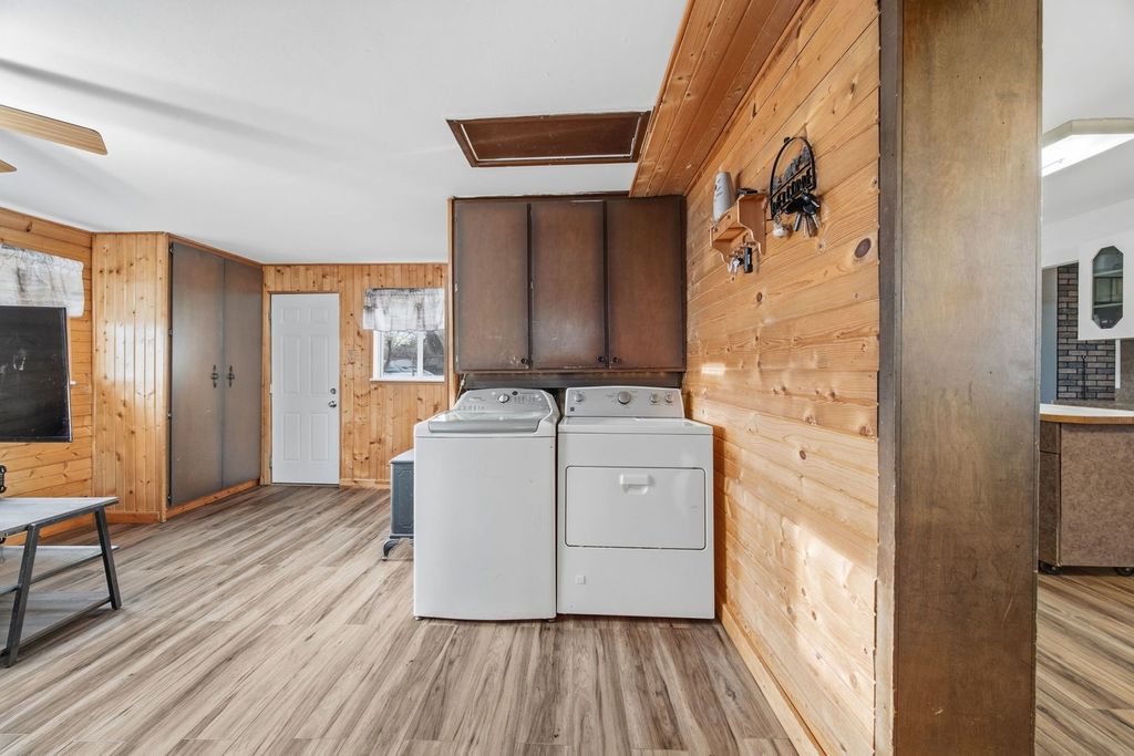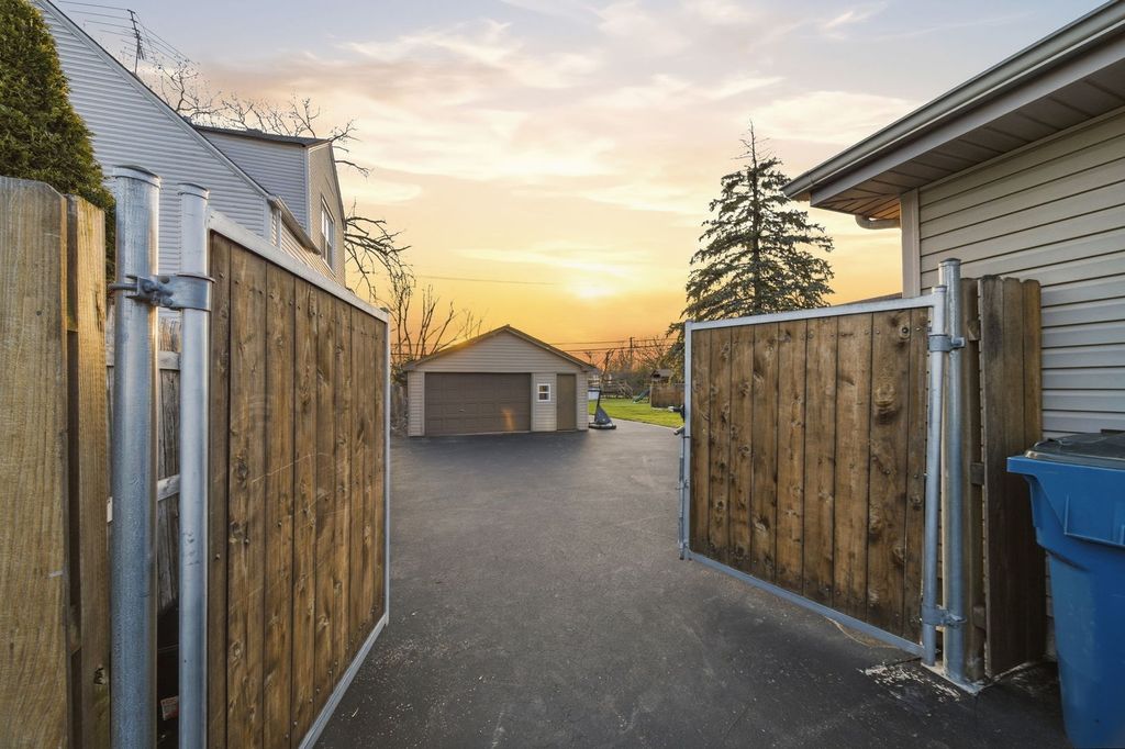 Spacious, versatile, and packed with value-this well-maintained 3-bedroom, 1.5-bath brick ranch offers the perfect blend of comfort, functionality, and room to grow. Situated on a large, level 0.41-acre fully fenced lot, this property is ideal for those seeking space for hobbies, vehicles, storage, or outdoor enjoyment. Step inside to a welcoming living room featuring a tray ceiling and a cozy wood-burning stove/fireplace, creating a warm and inviting atmosphere. The eat-in kitchen offers abundant cabinet and counter space, making meal prep and entertaining a breeze. All three bedrooms are conveniently located near one another, along with a full bathroom complete with a separate shower and tub, plus a linen closet for added storage. Toward the rear of the home, you'll find a flexible additional living space-perfect for a family room, home office, or recreation area-featuring a convenient half bath, and gas fireplace. Outdoors, the property truly shines. Enjoy summer days in the above-ground pool with a new liner and pump, relax on the patio, or take advantage of the expansive fenced yard. A long driveway provides ample parking and leads to an impressive multi-garage setup. With space to accommodate up to 5 vehicles, the detached garages and outbuildings feature extra-tall overhead doors, ideal for car enthusiasts, workshop needs, or additional storage. Recent updates include a new HVAC system (2021) and a newer roof on the second garage (2022), adding peace of mind. If you're searching for a rare property that offers space, flexibility, and endless potential-whether for work, play, or storage-this one checks all the boxes. Move-in ready with room to make it your own, this is an opportunity you don't want to miss!