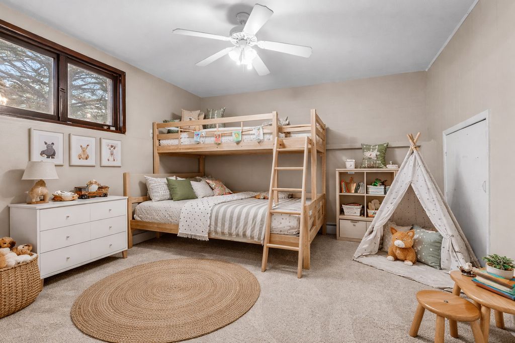 RARE FIND - SPACE, GARAGES & LOCATION ALL IN ONE. This rare split-level offers the space, flexibility, and garage capacity buyers have been waiting for: 3 bedrooms, 2 full baths + potential 4th bedroom, all on a 0.6-acre lot with COUNTY TAXES. Freshly painted with new carpet throughout, this home is move-in ready. The main level features an open-concept living room with a wood-burning fireplace that flows seamlessly into the dining area and kitchen. Two spacious bedrooms and a full bath complete the level, while sliding doors from the dining area open to a bright sunroom-perfect for additional living and relaxing. The kitchen provides direct access to a nicely sized concrete patio. The lower level is built for flexibility and value - featuring a large family room with a second fireplace, a third bedroom, a full bath, a bonus room, and a utility room. Major standout: a hard-to-find 5-car garage setup, including a heated, insulated workshop with extra storage - a true differentiator in today's market. Perfect for contractors, car enthusiasts, or anyone needing serious space. Conveniently located near Rock Cut State Park, I-90, Costco, hospitals, and fitness centers. Homes with this much space, land, and garage capacity do NOT come on the market often. Schedule your showing now - this one will not last. Some photos are virtually staged.