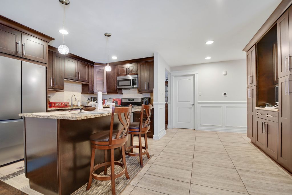 Originally designed for convenient living, this classic brick ranch with a finished basement is ready for you to move in and enjoy its beautifully remodeled interior (updated approximately 11 years ago). Step inside to find quality hardwood floors throughout the main level and a welcoming foyer with classic wainscoting that flows into a gracious living and dining room combo. The spacious, well-appointed eat-in kitchen features modern ceramic tile flooring, espresso shaker cabinets, granite countertops, and a center island with breakfast bar, all nicely open to a relaxing family room with a fireplace. Three generously sized bedrooms and nicely updated ceramic tile bathrooms complete the main level. The finished basement adds valuable indoor living and entertaining space, while the large wraparound deck enhances outdoor enjoyment in the expansive backyard. Easy to see and to buy, so schedule your private viewing before this beautiful home is gone!