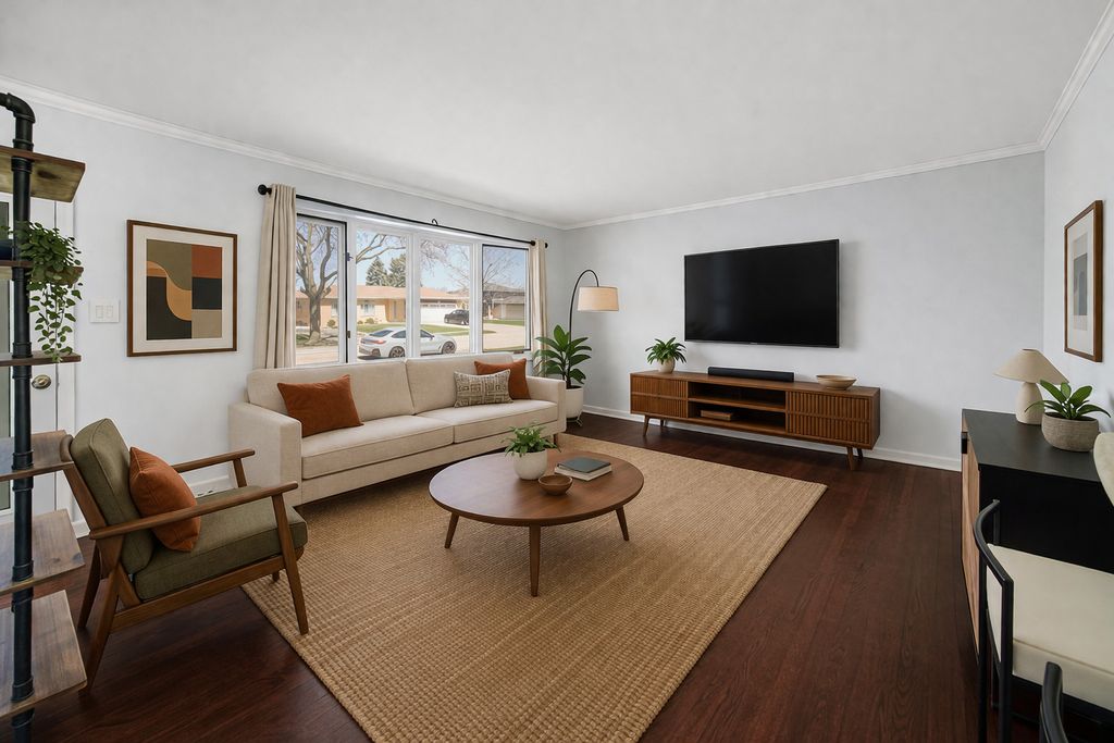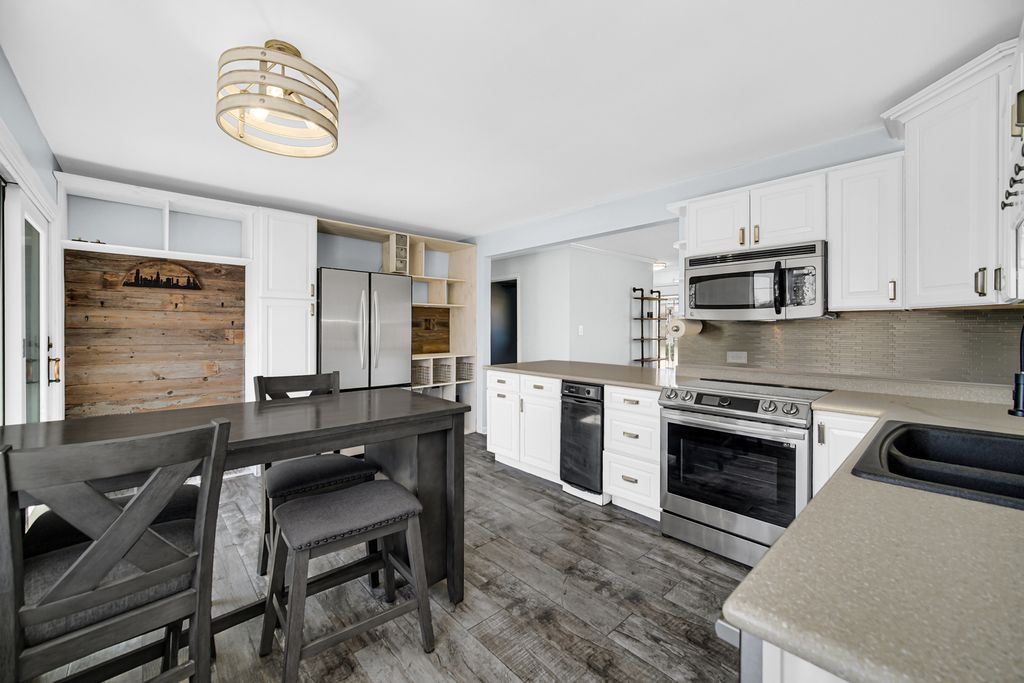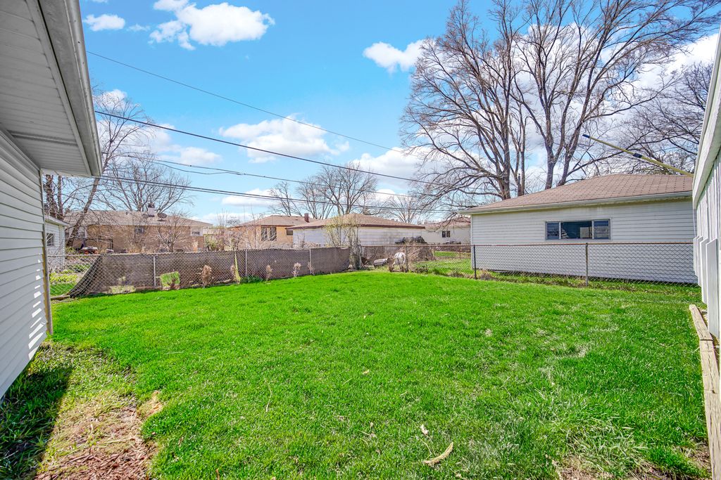 Welcome home! This charming updated all-brick ranch home situated on a private no through street which offers a perfect blend of space and modern comfort. With 4 bedrooms, 2 full bathrooms, and a full finished basement, this residence is designed to accommodate your every need. As you step inside, you'll immediately notice tons of natural light illuminating through the bay window into the living room with beautiful hardwood floors that continue throughout the main level. The kitchen is a chef's delight, featuring granite countertops, sleek white cabinets, stainless tile backsplash, wood inspired tile flooring, stainless steel appliances, table space and breakfast bar with stool seating. Convenient sliding door access from the kitchen to the backyard. Nice sized bedrooms with an updated full bathroom complete the main level. Venture downstairs to discover the fully finished basement (2012), offering additional living space with a family room, 4th bedroom,full bathroom with slate flooring and walk-in shower, and tons of additional space. Designated laundry room with LG washer (2023) and dryer (2014). Detached 2-car garage with electricity has a new garage door (2022) and new opener (2022). The fenced in backyard offers tons of entertaining space with an expansive new tech wood deck (2022) , gazebo and above-ground pool with a salt water system, creating your own private oasis right in your backyard. Shed for additional storage. Roof (2010) with solar panel system installed (2021). Located minutes to schools, shopping, dining, expressways and parks. Too many updates to list!!