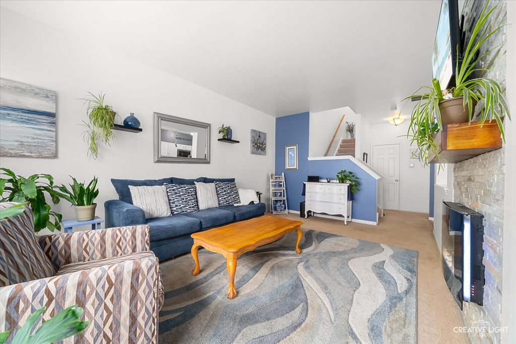 Beautiful and updated! This move-in-ready condo in Heather Glen features a wonderful layout & many recent modern improvements. The kitchen has been remodeled with classic white cabinery, under cabinet lighting, sleek Corian countertops and stainless steel appliances. The kitchen features hardwood flooring and has a roomy eating area with sliding glass door to the outside patio, which overlooks green space. Additionally both bathrooms have been remodeled with beautiful vanities. The large living room overlooks a lovely front yard and showcases a stunning new electric fireplace with a custom stone accent wall. The HVAC system and water heater were replaced approx. 2 years ago, ensuring year-round comfort and peace of mind. For added convenience, all appliances stay, including the washer and dryer located in the main-level laundry room. Upstairs, you will find two spacious bedrooms and a fully updated shared bath. The primary bedroom is a wonderful size & features a vaulted ceiling & ceiling fan. The primary bedroom also features an extra large walk-in closet. Baths & laundry room feature tile flooring. All the interior doors have been replaced with white 6 panel doors. 1 car attached garage is extra deep for storage. HOA includes water, exterior, landscaping, grass mowing & snow removal. Heather Glen is a quiet, low traffic neighborhhood close to open space & trails. Served by excellent schools and located near everything including shopping, restaurants, tollway, medical, etc. Schedule your showing today!