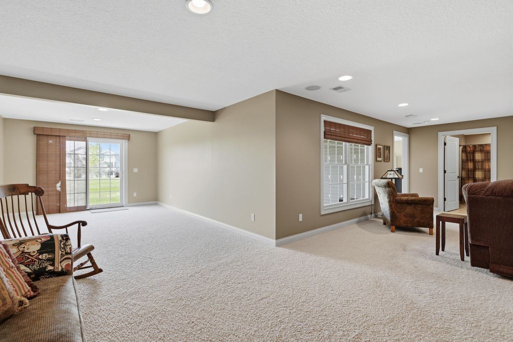 Welcome to this beautifully maintained ranch-style condo in the highly desirable Fountains neighborhood, offering access to the community clubhouse and dining amenities. The main floor features a spacious great room with an open-concept layout, seamlessly connecting to the kitchen and a bright sunroom-perfect for relaxing or entertaining. The generously sized primary suite provides comfort and privacy, while the conveniently located laundry room adds everyday ease. The fully finished lower level expands your living space with an additional bedroom, a large recreation room, and a full bathroom. You'll also find ample storage and a walk-out basement for easy outdoor access. Additional highlights include zero-entry access from the garage, making this home both accessible and functional. This is low-maintenance living at its best in a fantastic community!