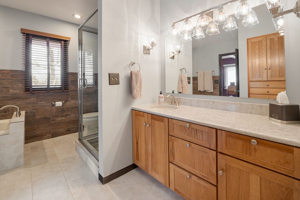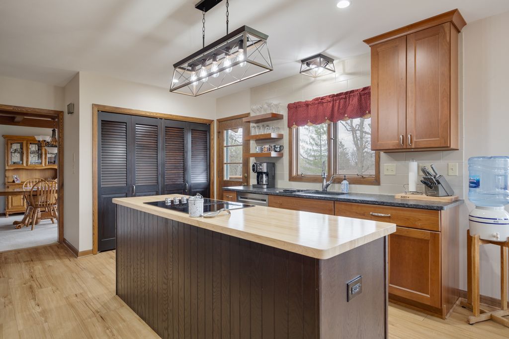 UNIQUE BRICK, STONE, AND CEDAR HILLSIDE RANCH BUILT WHEN QUALITY CONTRUCTION WAS THE NORM ~ EVEN THE INTERIOR WALLS ARE INSULATED ~ THE LARGE HARDWOOD FLOORED FOYER IS ENHANCED BY A NATURAL STONE WOODBURNING FIREPLACE, WHICH IN TURN IS ACCENTED BY SOLID BOARD WALNUT PANELING ~ BEAMED CEILINGS WITH RADIANT HEAT PANELS CREATE EVENLY EXECUTED ZONED HEAT ~ HOME SETS HIGH WITH A VIEW FROM THE MANY PELLA CASEMENT WINDOWS WITH ROLL SCREENS ~ NEW KITCHEN WITH TALL CHERRY SOFT CLOSE CABINETRY, GRANITE AND BUTCHER BLOCK COUNTERTOPS, ITALIAN PORCELAIN AND SUBWAY TILE BACKSPLASH, ALL STAINLESS APPLIANCES (INCLUDING A DOWN DRAFT ISLAND STOVETOP), AND LUXURY VINYL PLANK FLOORING ~ NEWLY REMODELED MASTER BATH WITH HICKORY CABINETS, QUARTZ COUNTER, AND CERAMIC WALLS AND FLOOR ~ THREE ROOMS HAVE BUILT-INS, INCLUDING A PULL DOWN IRONING BOARD ~ YOU WILL CERTAINLY FIND THE WORKING DUMB WAITER VERY USEFULL FOR CARRYING GROCERIES OR DELIVERING REFRESHMANTS ~ THAT'S JUST THE MAIN FLOOR ~ FULLY EXPOSED WALK OUT LOWER LEVEL PROVIDES AN IN-LAW OR SECOND FAMILY LIVING SPACE WITH ANOTHER KITCHEN ~ RECENTLY REPLACED DECK WRAPS AROUND THREE SIDES OF THE HOME ~ ALL THIS IN ONE OF THE CITY'S MOST ATTRACTIVE, ESTABLISHED NEIGHBORHOODS!