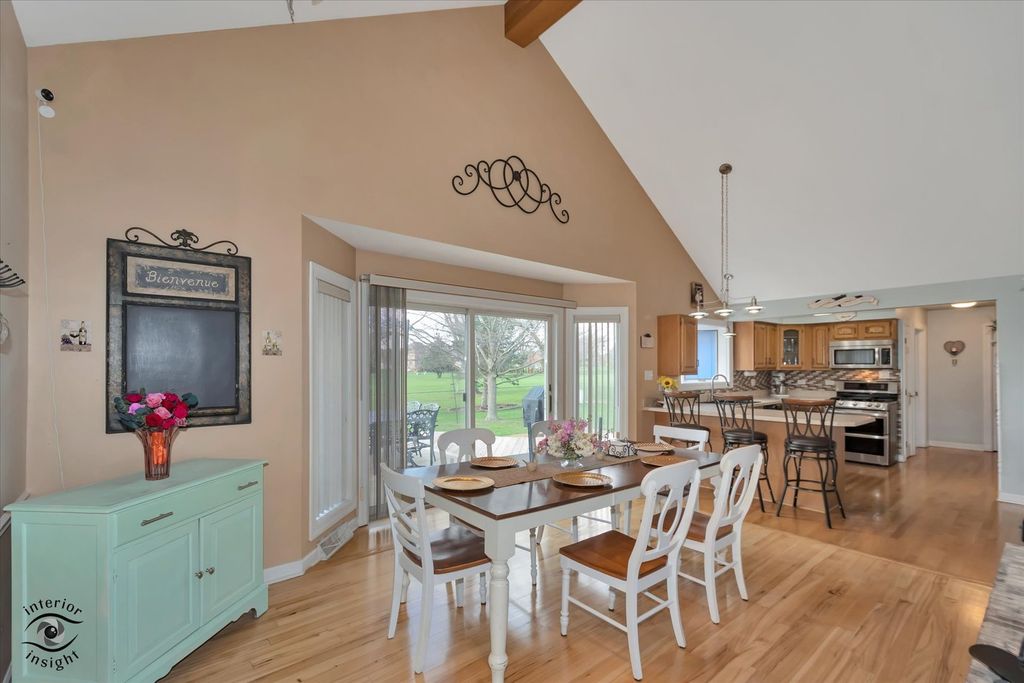 Live the Dream on the Golf Course - Stunning Home Overlooking North Course hole #8 ! Welcome to this beautifully maintained, move-in ready home featuring an open split floor plan and a soaring cathedral ceiling, perfectly positioned with peaceful, picturesque views of the golf course. The heart of the home is the gorgeous kitchen, complete with custom cabinetry, hardwood flooring, tiled backsplash, breakfast bar, and not one-but TWO pantries-offering both style and function for everyday living and entertaining. The spacious layout flows effortlessly, highlighted by a cozy two-sided fireplace. Enjoy true relaxation in the private master suite, featuring a jetted whirlpool tub, separate shower, and walk-in closet. With 3 bedrooms-including one privately located near a full bath-this layout is ideal for guests or multigenerational living. 2 bedrooms have brand new carpeting. The finished basement expands your living space with a bar area, family room, office space, workshop, and abundant storage-including a huge walk-in cedar closet. Step outside to your inviting new multi-level back deck, where you can sip your morning coffee or unwind in the evening while watching golfers pass by and taking in the serene views. A modern shed adds extra convenience. Additional highlights include: Main floor laundry Beautiful wood flooring Spacious rooms perfect for entertaining or cozy movie nights Well-maintained, truly move-in ready condition Located in a charming, safe community with a strong sense of pride and ownership, this home offers a high quality of life with a peaceful, small-town feel-while still being within a reasonable drive to Chicago for big-city amenities. If you've been dreaming of golf course living-this is it. Schedule your showing today!