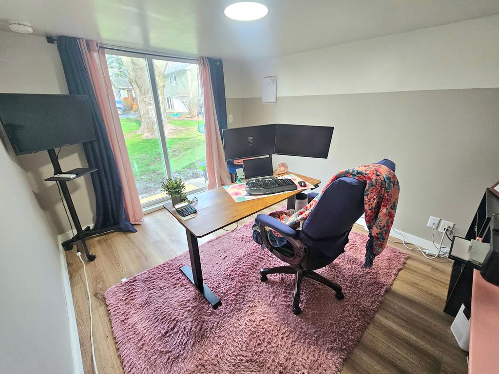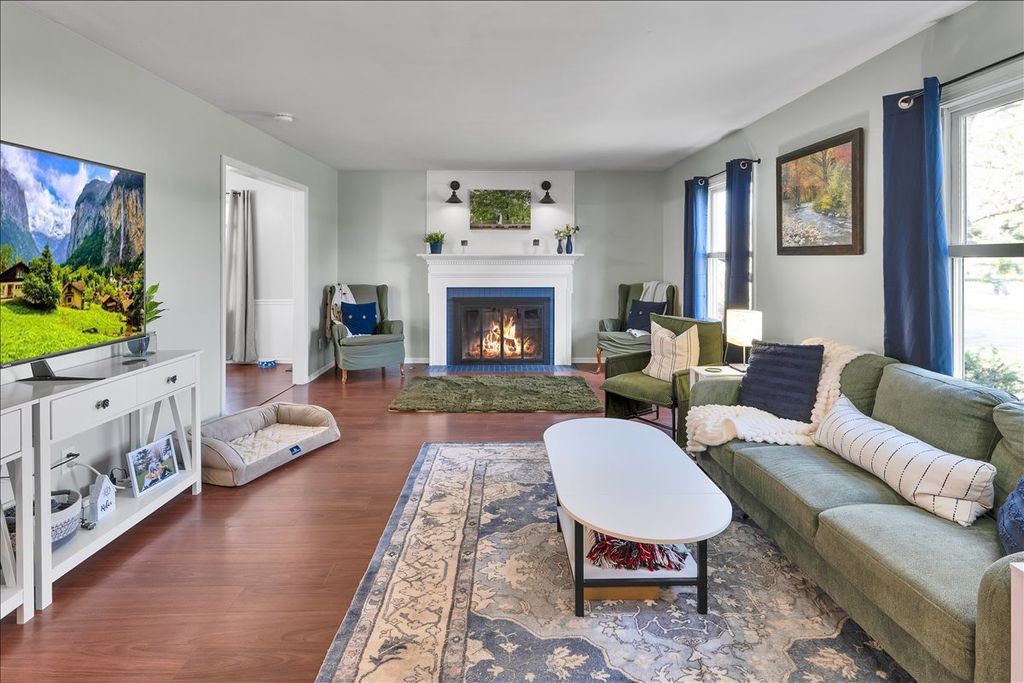 Turn-Key Entertainer's Dream with Backyard Oasis & Private Home Office. Rarely does a home offer this level of curated living and total peace of mind. Located in the highly sought out Woodland hills neighborhood, this 4-bedroom, 2.5-bathroom home has been transformed into a multifunctional retreat. With extensive exterior upgrades in the last year-including a new roof, siding, downspouts and leaf-guard gutters-all the heavy lifting is done. Step into a bright, open interior featuring fresh paint throughout and brand-new carpeting upstairs. The heart of the home is the stunning renovated kitchen, showcasing bold teal cabinetry, sleek granite countertops, and a suite of stainless steel appliances. The home features two distinct living areas, each anchored by a wood-burning fireplace with a gas starter for cozy winter nights. Accessible directly from the family room is a unique all-glass 3-season sunroom. This enclosed spa room houses your private hot tub, allowing you to soak in the views of the mature trees and falling snow while staying protected from the elements. Skip the commute and the distractions. The detached backyard structure has been converted into a luxury home office. It is fully climate-controlled with a dedicated mini-split system and is hardwired with high-speed internet, offering a quiet, professional sanctuary just steps from your back door. The massive, tree-lined backyard is built for entertaining, featuring: an expansive deck with ample seating space, a designated fire pit area for evening gatherings, and a 18 x 33 foot (54 inch depth) above-ground pool for summer fun. Within the standard 2-car garage is a vast system of built-in shelving, perfect for the hobbyist or organized homeowner.