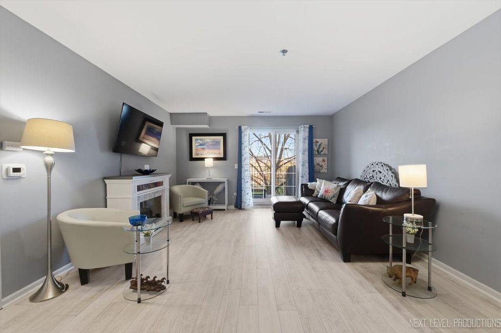 Discover this charming Hunt Club condo with serene views of mature trees. The bright, open floor plan invites easy living - the kitchen flows into the main living room, creating a natural hub for cooking and entertaining. An eating-area lined with abundant cabinets provides generous storage for all your culinary gear. Newer luxury vinyl flooring or tile throughout the unit. No carpet! This unit offers two bedrooms and two full bathrooms. A stackable washer and dryer are tucked into a closet off the kitchen for convenient laundry. Step out onto the balcony that spans from the living room to the primary bedroom - a perfect spot for morning coffee or evening relaxation. The second bedroom features its own sliding door for fresh air and includes a roomy walk-in closet. Practical extras include a storage locker on the garage level (marked 163 at the top of the locker; located in the garage storage room, not directly across from the elevator) and assigned parking space #18 in the secure, underground heated garage. The building enhances comfort and community with a shared room featuring a full kitchen and fireplace. Recent building updates: new roof and siding in 2020. Ideal location - just minutes from downtown St. Charles, shopping, and restaurants. Schedule a showing and see why this Hunt Club condo is such a great find.