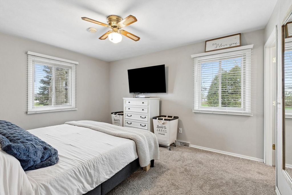 Nestled on nearly 2 acres of peaceful countryside, this well-maintained 3-bedroom, 2.5-bath ranch offers the perfect blend of space, privacy, and flexibility. With no covenants or restrictions, you have the freedom to truly make it your own. Inside, you'll find a welcoming main level with fresh living room carpet, abundant natural light, and a functional layout ideal for everyday living and entertaining. The spacious kitchen, large dining area, open living room, and deck provide plenty of room to gather, while all three bedrooms are conveniently located on the main level, including a primary suite with its own bathroom and walk-in closet. The hallway bathroom has been recently updated. The finished walk-out basement expands your living space with a cozy family room, large laundry and storage area, workroom, half bath, and access to a relaxing sunroom-perfect for enjoying the surrounding views. Outside, the property features both an attached deep 2-car garage and a detached 24x30 garage with overhead door, along with ample space to roam. Enjoy peaceful country living with the convenience of being just a short drive from the Quad Cities.