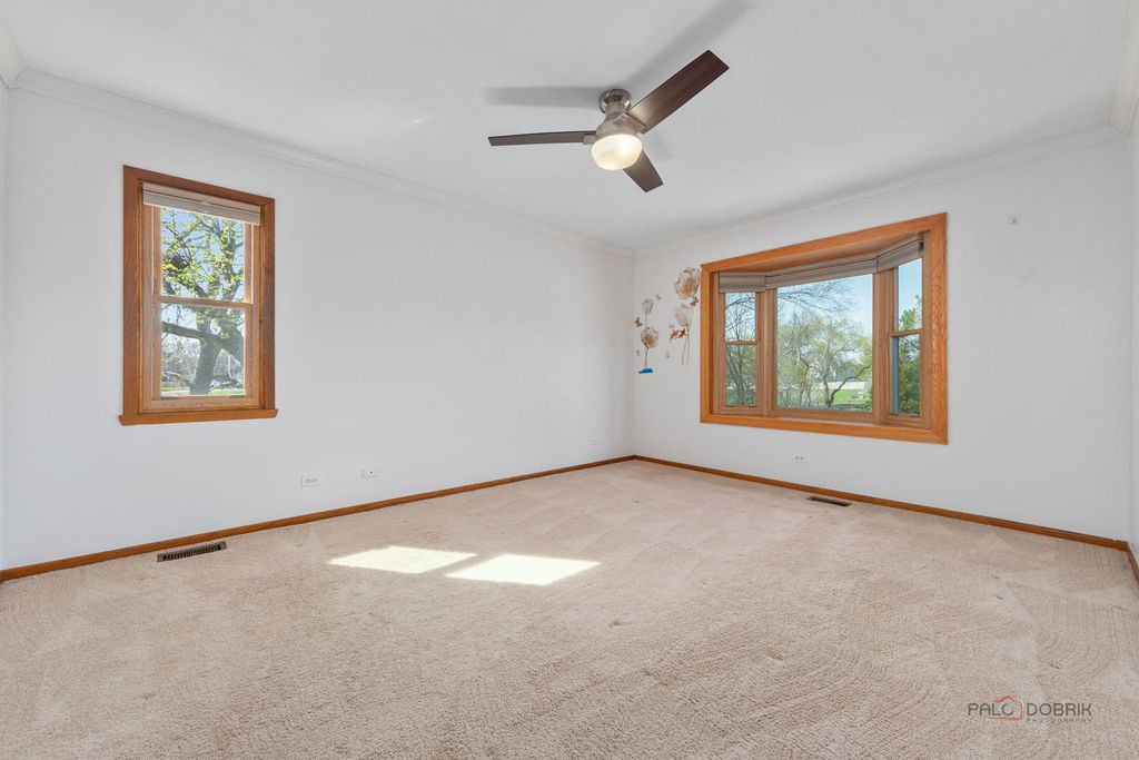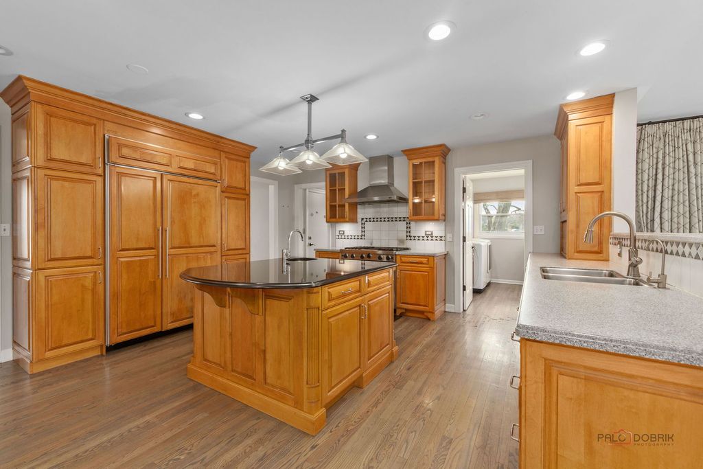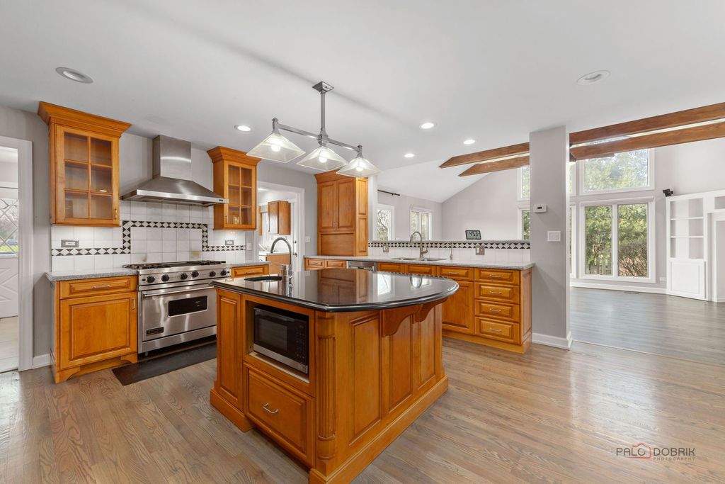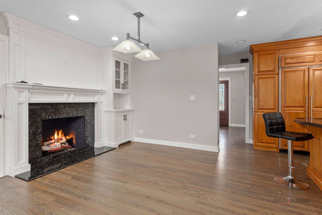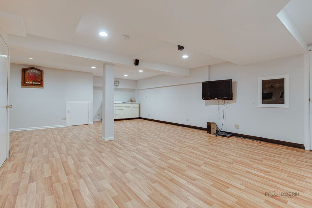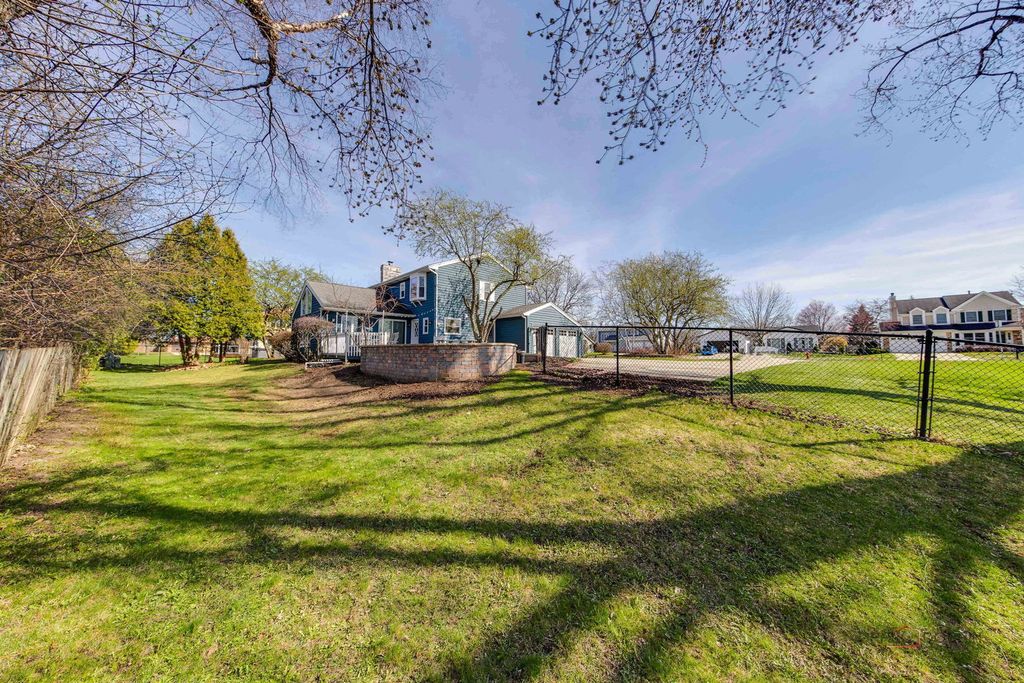 This charming 4-bedroom, 2.5-bath home boasts excellent curb appeal and is perfectly situated in the desirable Weathersfield West neighborhood of Schaumburg. The spacious living room offers generous room for any lifestyle needs. Adjacent is a bright formal dining room featuring a lovely bay window that fills the space with natural light. The chef-inspired kitchen impresses with stainless steel appliances, including a high-end refrigerator and sleek range hood, plus a large island with prep sink, breakfast bar, and an eat-in area with a fireplace. The warm family room is filled with natural light, accented by wood beams, and opens to the patio via a sliding door. A convenient first-floor powder room and laundry room with sink and plenty of storage add everyday ease. Upstairs, the primary suite includes a walk-in closet and a private bathroom with double sinks and an oversized walk-in shower. Three additional bedrooms provide ample closet space and are served by a shared full hall bath. The partially finished basement offers a large recreation room, ideal for entertaining or relaxing. Outside, enjoy the fully fenced backyard with a low-maintenance deck that leads to a brick paver patio and gas firepit - perfect for summer evenings and gatherings. Located right next to a park and conveniently close to top-rated schools, shopping, restaurants, and major highways, this home delivers both comfort and prime location in Schaumburg.