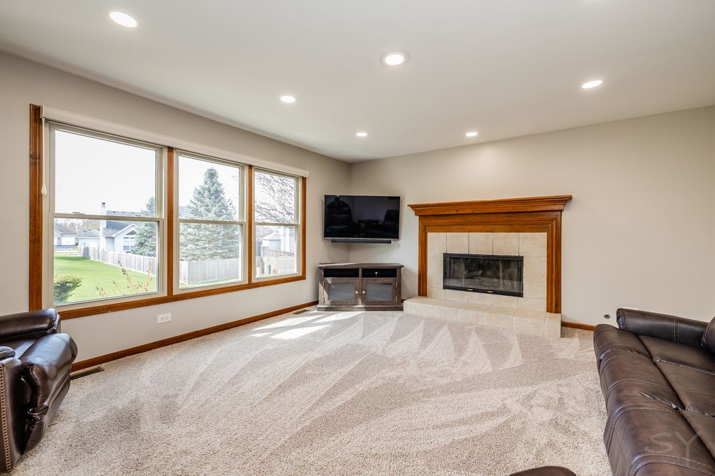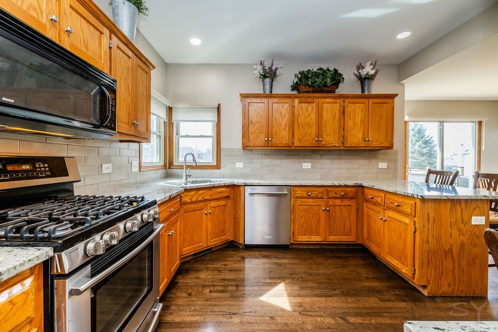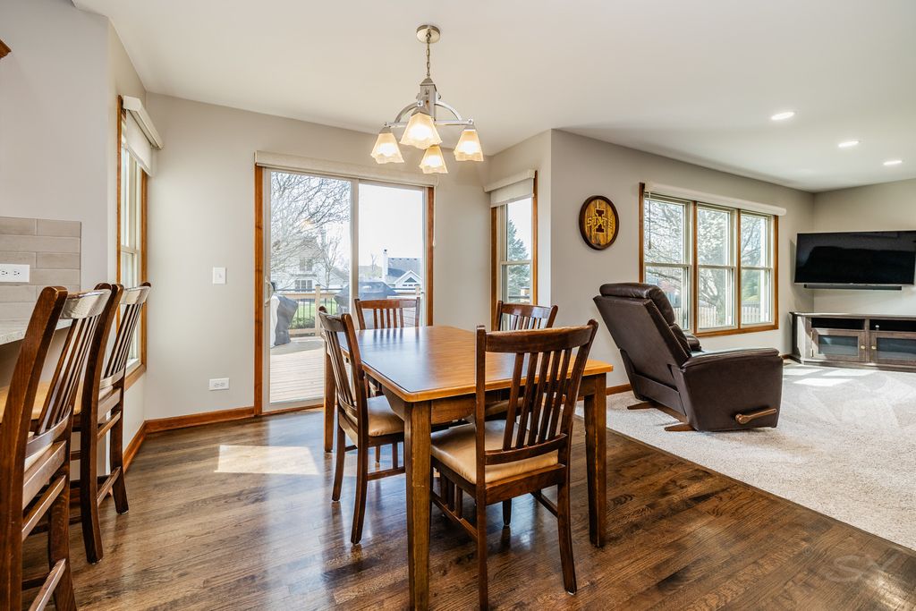 Welcome to this exceptional and beautifully maintained 5-bedroom, 3.5-bathroom turnkey home located in the highly sought-after Deerpath Creek neighborhood. Featuring an oversized 3-car garage, this property truly stands out from the rest. Upon entry, you're greeted by gleaming real hardwood floors and impressive 18-foot ceilings that create a bright, open, and inviting atmosphere and 9 ft ceilings most of the main floor. The foyer flows seamlessly into a versatile flex room and a spacious formal dining room-perfect for hosting holidays or easily converting into a home office or playroom. The updated kitchen is designed for both everyday living and entertaining, showcasing stainless steel appliances, a subway tile backsplash, high-end granite countertops, and a large island with breakfast bar seating. An additional breakfast nook provides even more dining space. The kitchen opens to a sun-drenched, south-facing family room where you can relax by the cozy fireplace. The entire main level was thoughtfully updated in 2020, including recessed lighting, fresh paint, hardwood flooring, and custom blinds. Upstairs, you'll find four generously sized bedrooms, some of which feature fresh paint, ceiling fan fixtures, and functional layouts and a vaulted ceiling. The hall bath was just updated with trending neutral colors, new fixtures, and a beautiful vanity. The primary suite offers elegant tray ceilings and a spacious ensuite bath complete with a brand-new tiled shower and neutral finishes throughout. The fully finished basement expands your living space even further, offering a large recreation area, a fifth bedroom ideal for guests or an in-law arrangement, a full bathroom, and a convenient kitchenette. Storage is abundant with an oversized mechanical room perfect for seasonal items and more. Additional highlights include main-level laundry-eliminating the need for basement trips-and thoughtful functionality throughout the home. Step outside to your peaceful and tranquil backyard and enjoy outdoor living on the brand-new, expansive wood deck-perfect for entertaining, relaxing, and summer BBQs, large and extra wide driveway nestled on a low traffic Cul-De-Sac street. This move-in-ready home offers space, style, and versatility. You can be the next to cherish and enjoy it as much as its owners have over the past 20 years.