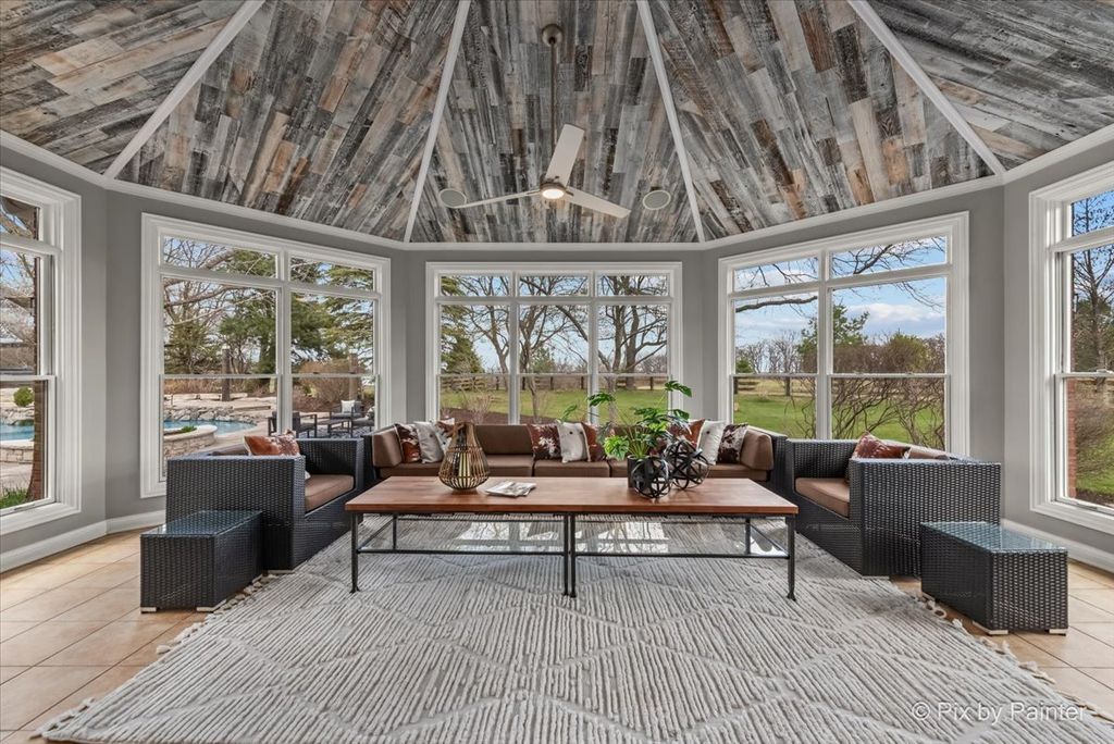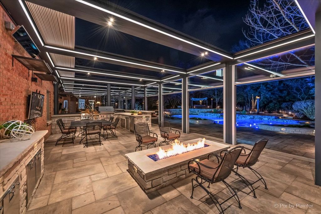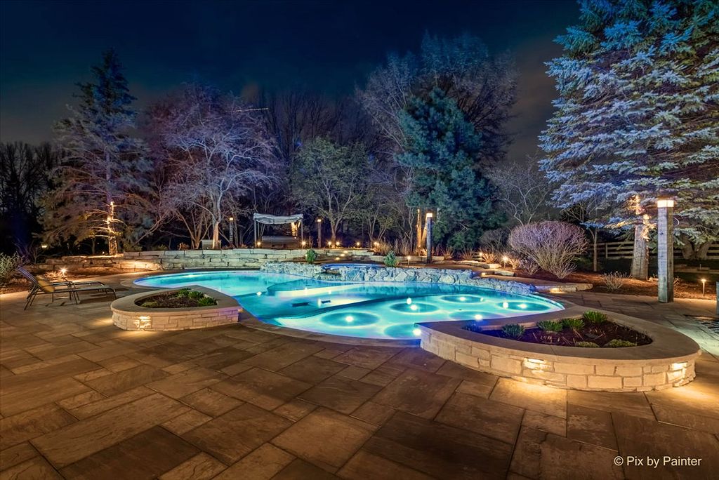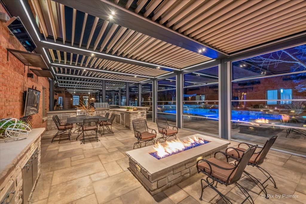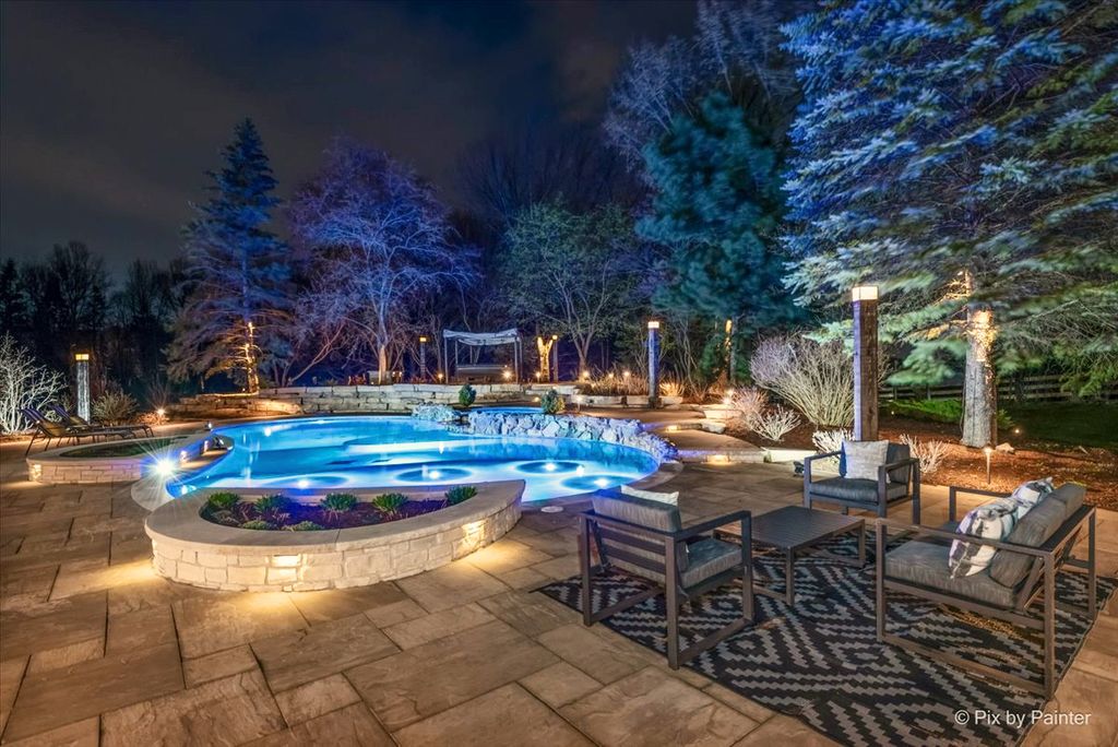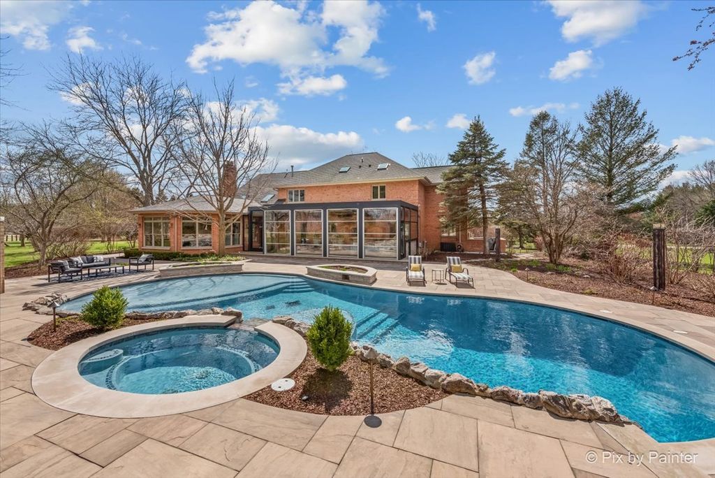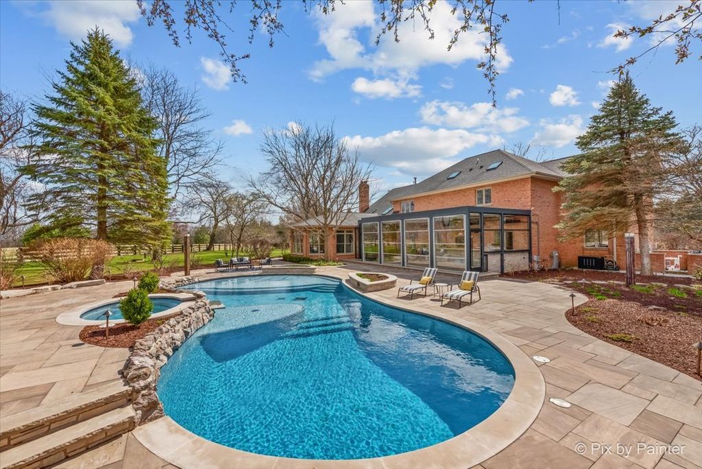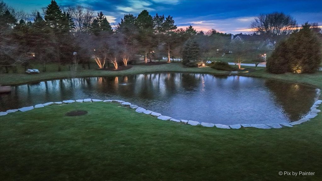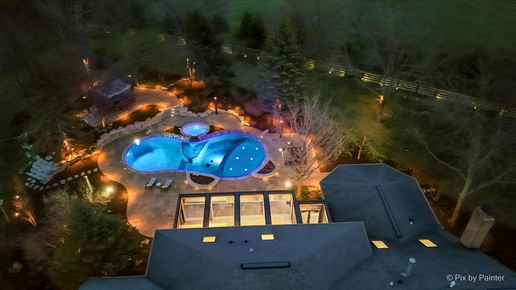 Welcome to this truly private, resort-style estate set in a prime location-where luxury living seamlessly blends with the beauty of the outdoors. This exceptional 5,300+ sf full brick residence exudes a timeless, stately presence. Inside, the home blends traditional elegance with modern updates, featuring hardwood flooring, tray ceilings, crown molding, updated lighting and beautiful finishes throughout. The chef's kitchen features newer appliances, including an 8-burner cooktop, double ovens and a brand-new refrigerator. The kitchen flows seamlessly into the two-story family room with a cozy fireplace, creating an open inviting everyday living space. The light-filled, pentagon-shaped sunroom captures panoramic views of the breathtaking grounds. The dedicated home office/study is set apart for peace & quiet. The primary retreat is just that, featuring a spacious walk-in closet, along with a luxury bath that includes a brand new top-of-the-line two-person jetted tub, two separate vanities, and a double-head shower. A standout feature of this home is the brand-new, fully automated four-season pergola room, thoughtfully designed with fully insulated, thermal-pane retractable glass walls and a retractable, lighted ceiling-allowing you to enjoy the sunlight by day or the stars in the evening. This space creates a seamless indoor-outdoor experience, complete with an outdoor kitchen featuring a Hestan grill, side burner, warming drawer, under-counter refrigerator, and glass firepit. This exceptional room allows for year-round entertaining while opening fully to enjoy fresh air poolside and completely private surrounding views. The outdoor living space continues with the completely rebuilt (2024) in-ground pool and spa-a true showstopper. The fun continues with a separate eight-person, lighted hot tub featuring an automated cover. A brand-new sport/pickleball court offers endless activity, while the fully stocked private pond with a newer pier and waterfall creates a peaceful retreat to enjoy nature. This home has been thoughtfully designed to balance recreation and relaxation-even featuring its own disc golf course. The grounds designed by Grant & Power are equally impressive, with expansive stone patios, a full irrigation system, and extensive custom outdoor lighting all enhancing the property's ambiance well into the evening hours and showcasing the picturesque surrounding views. The owners have invested well over $1 million into this extraordinary property, elevating every detail to create a truly unmatched living experience-making this a rare and one-of-a-kind offering.