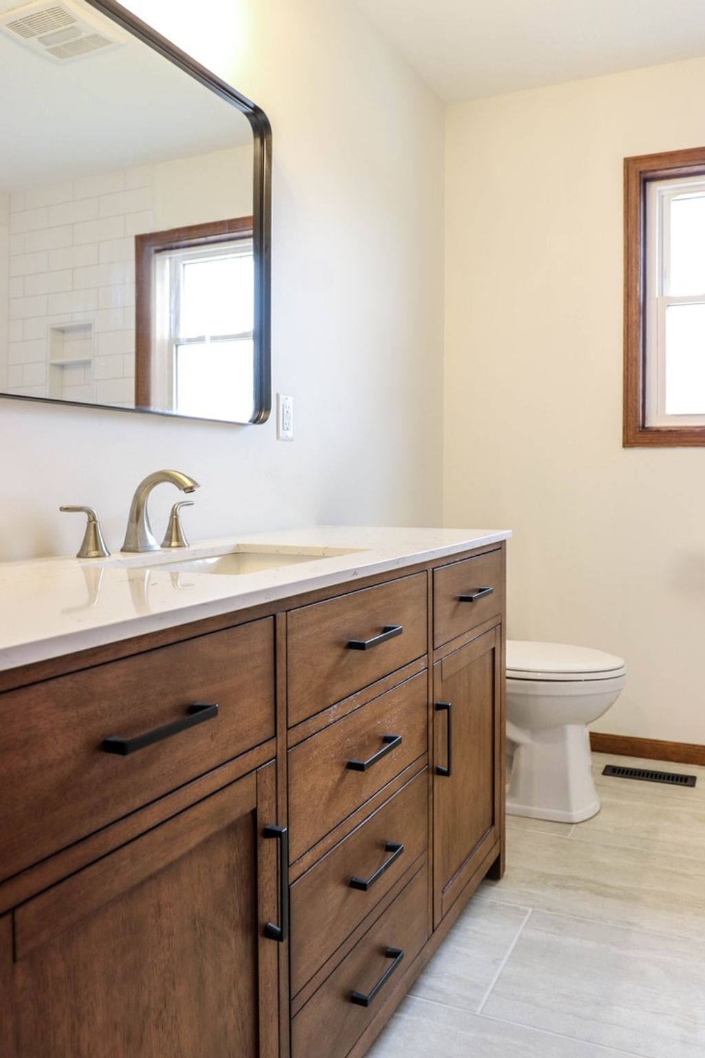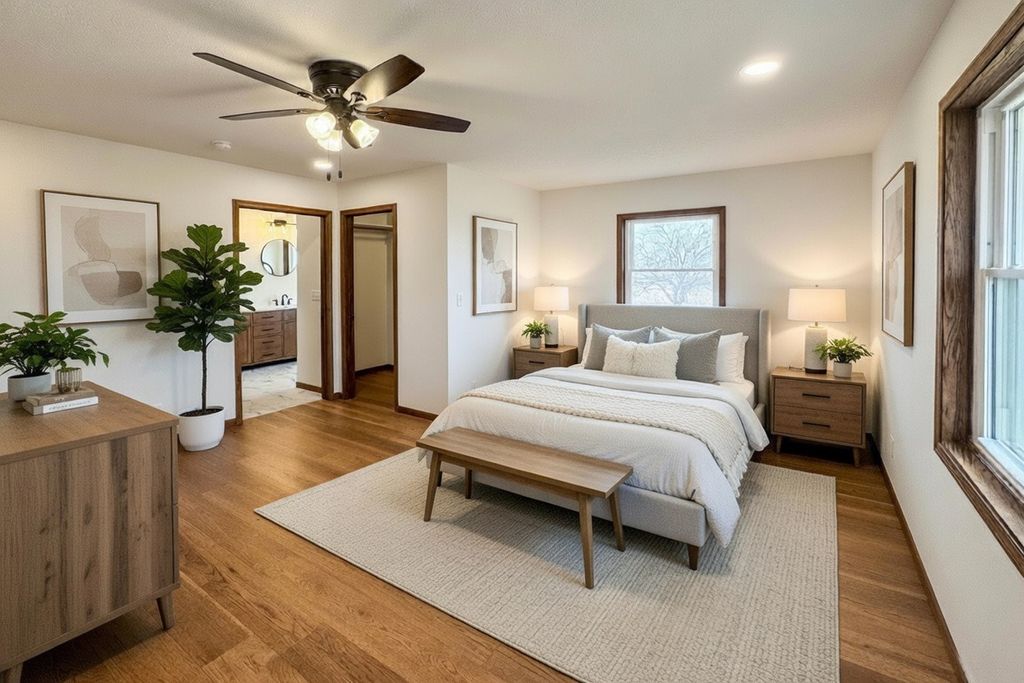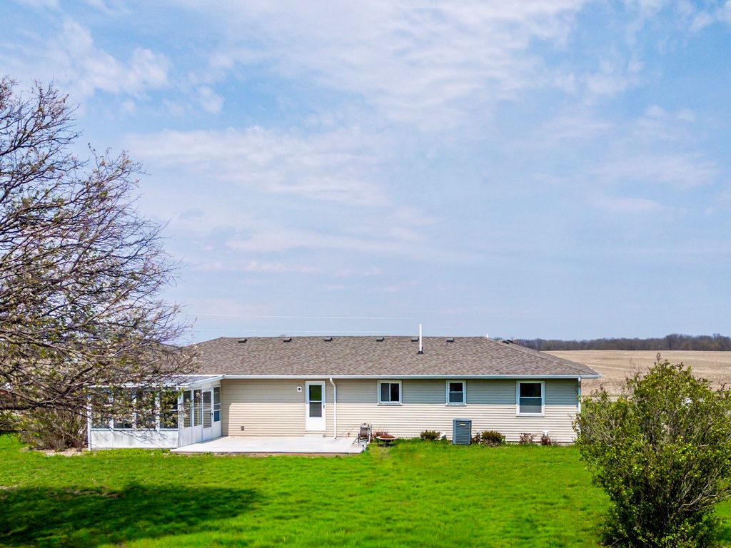 Follow the sunset just west of Hudson to this remarkable rural property, nestled on a sprawling 1.45 acre parcel in coveted Unit 5 Schools! This classic ranch brick beauty offers the quiet comforts of country living outside, plus a recent renovation inside that still blends seamlessly with the original intention and style of this custom build. Original owners have applied the same care and thoughtful design as they did the first time around... not only adding stunning cosmetic upgrades but improved form and functionality of the entire space to meet the modern needs of the most discerning buyer. Pass through the terrace and into the foyer and you'll immediately notice the quality of finishes and impeccable craftsmanship of this home. Creamy white walls make a striking contrast with the original hardwood trim and doors, while newly installed engineered pecan hardwood flooring offer a seamless transition throughout the main level. Enter the inviting kitchen with fresh Weston white shaker cabinets, stunning matte black Pfister faucet and fixtures, and never-been-used stainless Frigidaire appliance suite features gas rage/oven, full-size side-by-side refrigerator, built-in microwave, single-bowl stainless sink and nearby dishwasher. Rich quartz counters complement the textured backsplash for years of durable style, while pull-out drawers, built-in trash bins and a spacious island add functionality and plenty of room for prep! Additional eat-in table space makes for easy entertaining and overlooks the main family room, featuring original built-ins, white-washed hearth and wood-burning fireplace for cozy evenings at home. Step outside and enjoy the screened porch for additional entertaining space plus a raised deck area for easy outdoor entertaining. Formal dining with light and bright picture window overlooks the front terrace and invites your guests to linger longer over holiday meals and exciting game nights! Follow the hardwoods to the spacious primary suite featuring full views of the fields and flowering trees, newly added walk-in closet and private ensuite with double sink vanity, ceramic tile, and frameless glass walk-in shower with custom niche and penny-round tile for added style. Enjoy two additional spacious bedrooms on the main level with ample closet space and a fully renovated guest bath featuring ceramic tile shower surround and tub just great for guests. Main level devoted laundry room features gas dryer, matching washer/dryer set and wash bin for convenience. Head downstairs to enjoy the newly finished lower family room with can lights, luxury plank vinyl floors and plenty of space for a pool table, fitness or theater. Newly added egress window offers a fourth bedroom option with double closets and additional space for office or hobby room. Unfinished utility area houses the hvac system, water heater, sump pump and water softener to ensure the health and safety of this home for years to come. Attached two-car extended garage offers easy access to the surrounding property, plumbed heater, and devoted work bench plus additional storage shed with extra space for toys and tinkering! These owners thought of everything and are including a whole-home generator for added peace of mind. Experience the best of both worlds, with sprawling country as far as the eye can see and still just a few minutes north of Bloomington/Normal, this home has so much to offer, inside and out!