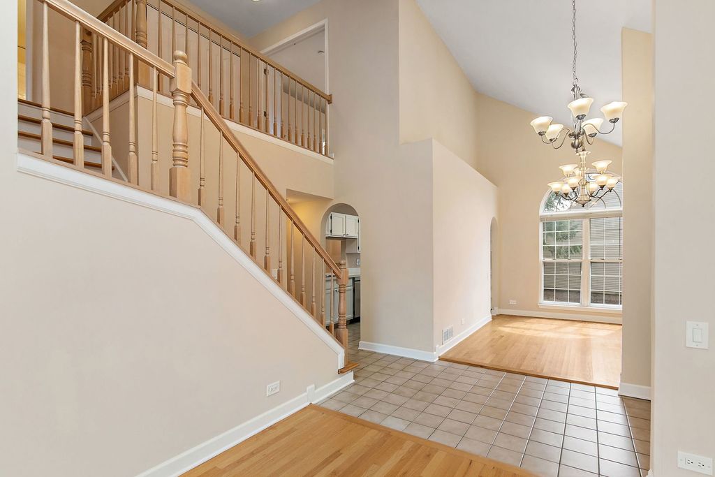 Well maintained 3 bedroom townhome situated in a prime location in desirable Hearthstone in Hoffman Estates, featuring an inviting foyer that opens to a spacious living room with dramatic vaulted ceilings, skylights providing an abundance of natural light, and gleaming hardwood floors. The formal dining room with a pass-through to the kitchen is perfect for entertaining, while the kitchen itself boasts stainless steel appliances, an eat-in area, and a breakfast bar. The family room adds even more space and features a cozy fireplace, and the main level also includes a convenient powder room, laundry room, and under-stair storage. Upstairs, you'll find a generously sized primary bedroom with a vaulted ceiling, walk-in closet, and en-suite bath with double sinks, a separate shower, and soaking tub, along with two additional bedrooms and a full bath. NEW: roof (2025), Skylights (2025), and Gutters (2025). Outside, relax on the patio overlooking professionally landscaped grounds, all just steps from parks, shopping, restaurants, and easy interstate access-making this home the perfect blend of comfort, style, and convenience.