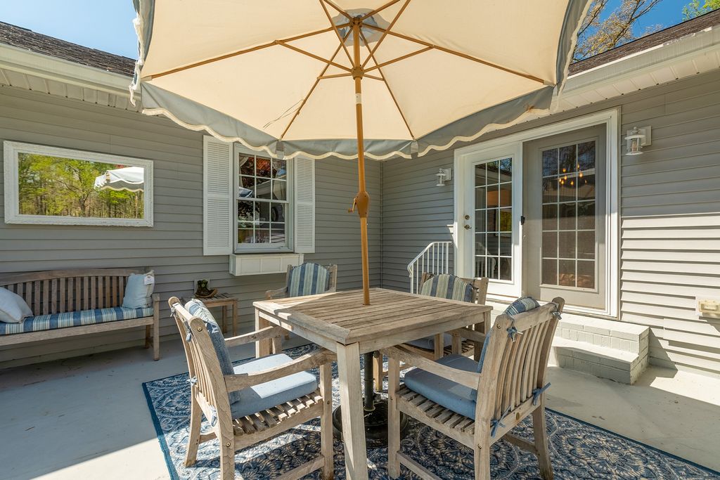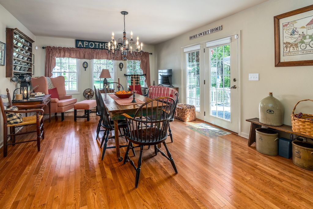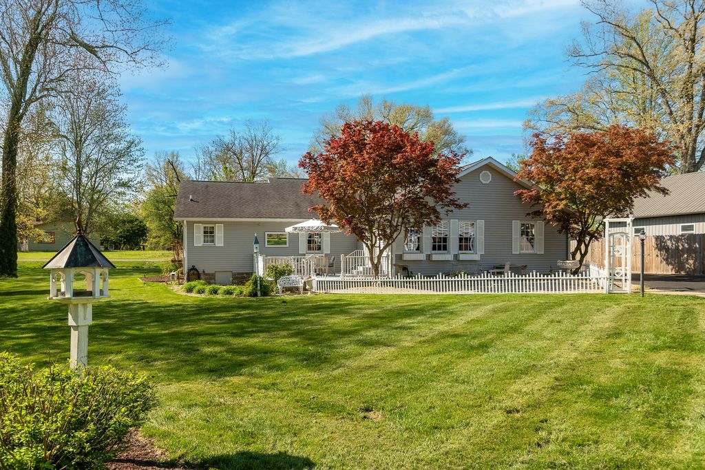 Welcome to this charming, impeccable 2-bedroom, 2-bath home featuring a sprawling front porch perfect for morning coffee or evening gatherings. Inside, enjoy a bright, open living space with hardwood floors, updated kitchen with modern cabinetry, wood block counter top, stainless appliances, and a flexible floor plan that flows easily for everyday living and entertaining. The custom built fireplace surround conceals hidden pantry storage that is functional, yet unexpected! The views from the family room (currently used as a dining room) set the stage for both privacy and peaceful living with access to the concrete back porch large enough for furniture of your choice. Practical features include an attached one-car garage for convenient access and an additional 2-car detached garage - providing abundant parking and storage or a workshop option. The private backyard and mature landscaping complete the picture of comfortable, move-in-ready living in a rural subdivision in close proximity to Karel Park. (Be sure to ask your broker for list of exclusions of personal property and fixtures)