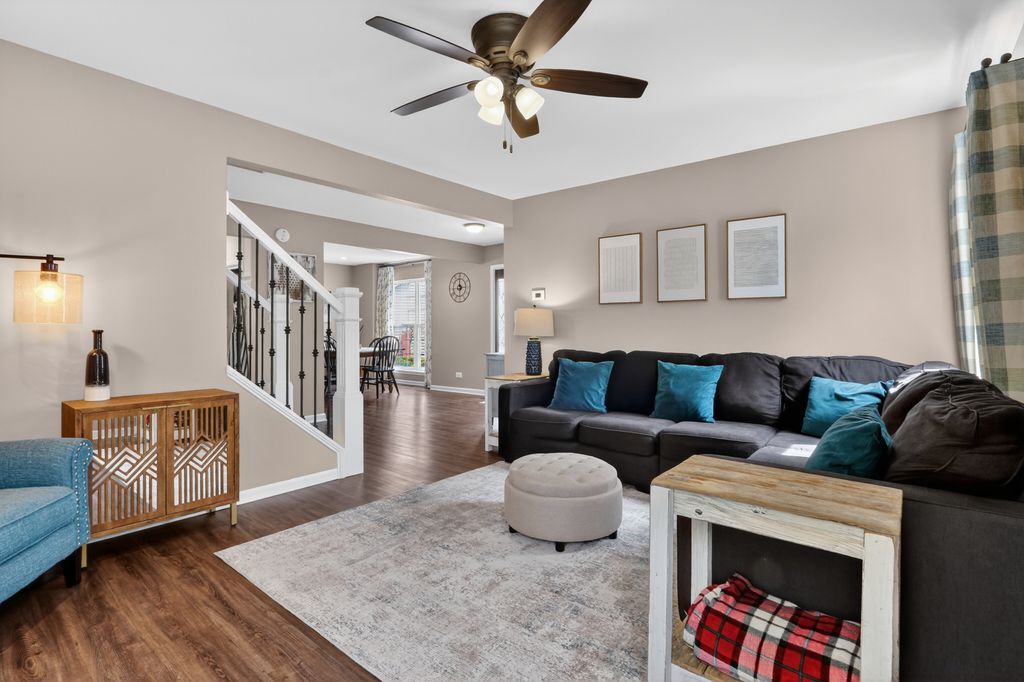 Your search ends here! Beautifully updated 2-story home nestled on a quiet cul-de-sac in desirable Grayslake offering 3 bedrooms, 2.5 bathrooms, and incredible curb appeal from the moment you arrive. The welcoming exterior showcases a newer driveway, paver walkway, front stoop, and a stunning newer front door. Step inside to find gorgeous luxury vinyl plank flooring throughout the first floor and a thoughtfully updated layout perfect for everyday living and entertaining. The updated kitchen is a true standout, featuring new white cabinetry, a cabinet pantry, stunning quartz countertops, stainless steel appliances, and chic lighting. The space flows seamlessly into the family room, highlighted by a beautifully upgraded fireplace with new tile and shiplap. Just off the main living area, enjoy the screened-in porch-perfect for relaxing while overlooking the oversized backyard. Upstairs, the primary suite impresses with volume ceilings, a fantastic closet with Closet Works organizer, and a beautifully updated private ensuite bathroom. Two additional spacious bedrooms and another updated full bathroom complete the second level. The finished basement offers additional living space ideal for entertaining, a home office, fourth bedroom possibility or recreation. Step outside to a large fenced-in backyard featuring a brick paver patio and expansive green space-perfect for outdoor enjoyment, playtime, or gardening. Ideally located just a few blocks from Meadowview Elementary School and minutes from downtown Grayslake with shopping, restaurants, and more. Recent updates include roof (2019, previous owner), dishwasher (2022), furnace (2023), shed (2023), washer and dryer (2025), and ejector pump (2026). Schedule a showing today! Make sure to check out the floor plans in photos.