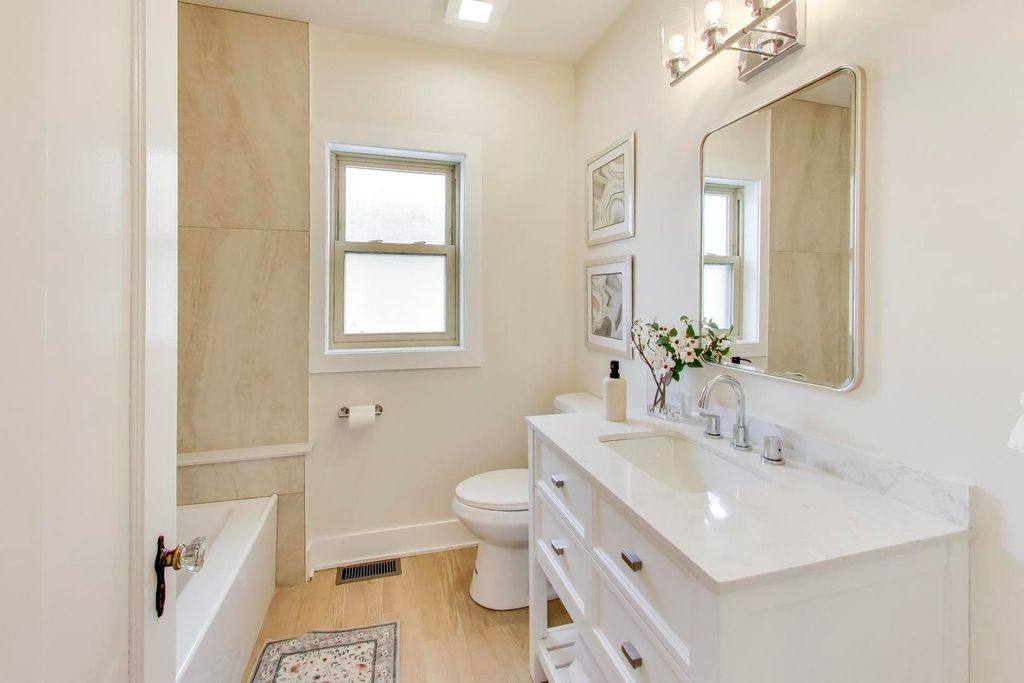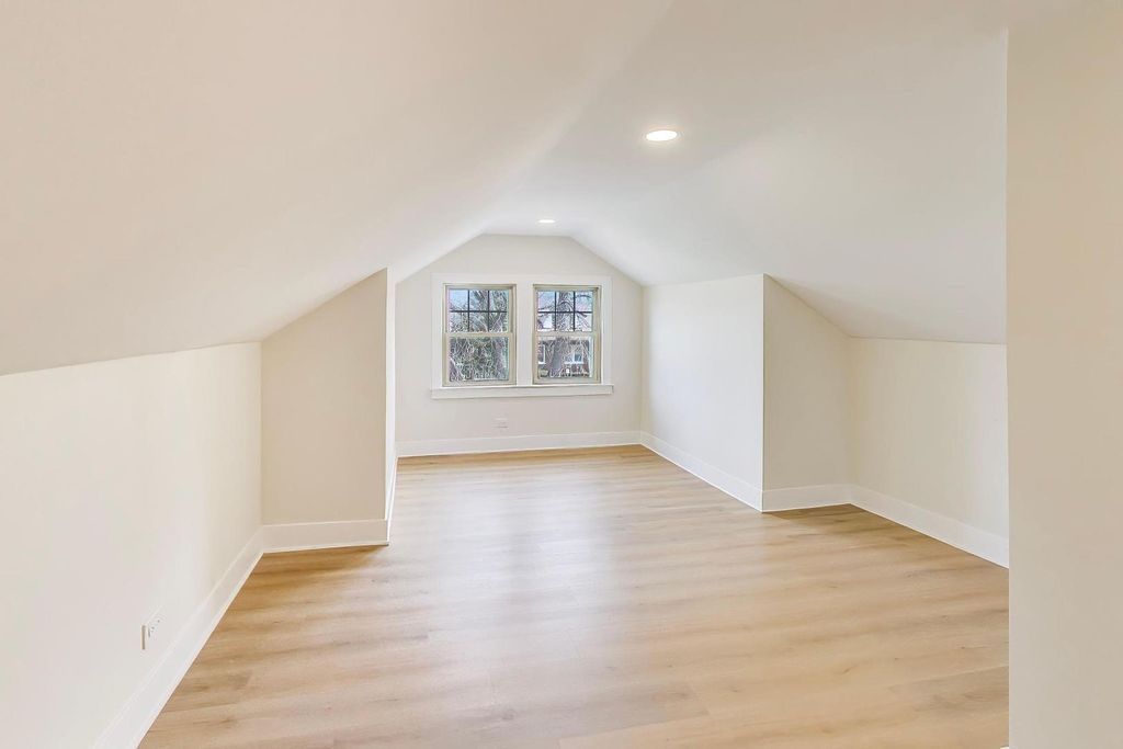 Oversized brick bungalow offering 4 bedrooms + office/flex room and 2 full bathrooms, thoughtfully designed for comfortable everyday living. From the moment you enter, you're welcomed by a bright foyer that opens into a spacious living room filled with natural light, featuring a beautiful fireplace and custom built-ins-perfect for relaxing evenings or gathering with family and friends. The main level flows effortlessly into a dedicated dining area and a beautifully designed kitchen, complete with premium LG appliances, quality cabinetry, and modern finishes-creating a space that is both functional and inviting for cooking and entertaining. This level also offers two comfortable bedrooms, a full bathroom with clean, modern design, and a versatile office/flex room-ideal for working from home, a playroom, or additional living space. Refinished hardwood floors throughout add warmth and character. Upstairs, the fully finished attic provides additional living space with bedrooms and a full bathroom-perfect for guests, extended living, or a private retreat. Major updates include all new plumbing, electrical, HVAC, roof, and lead water service line, offering peace of mind for years to come. A full unfinished basement provides excellent storage and future potential to expand your living space even further.